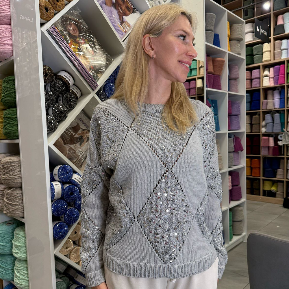 РОМБЫ КУЧИНЕЛЛИ | Что вас ждет на мастер-классе: - Техника интарсия, - Сшивное изделие, - Убавки и прибавки в интарсии, - Матрасный и плечевые швы. |