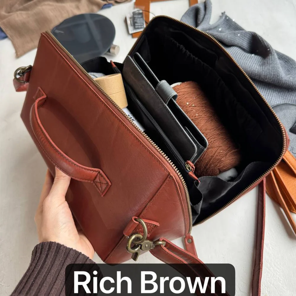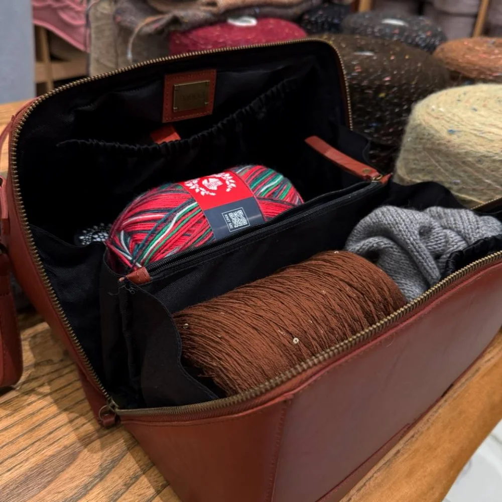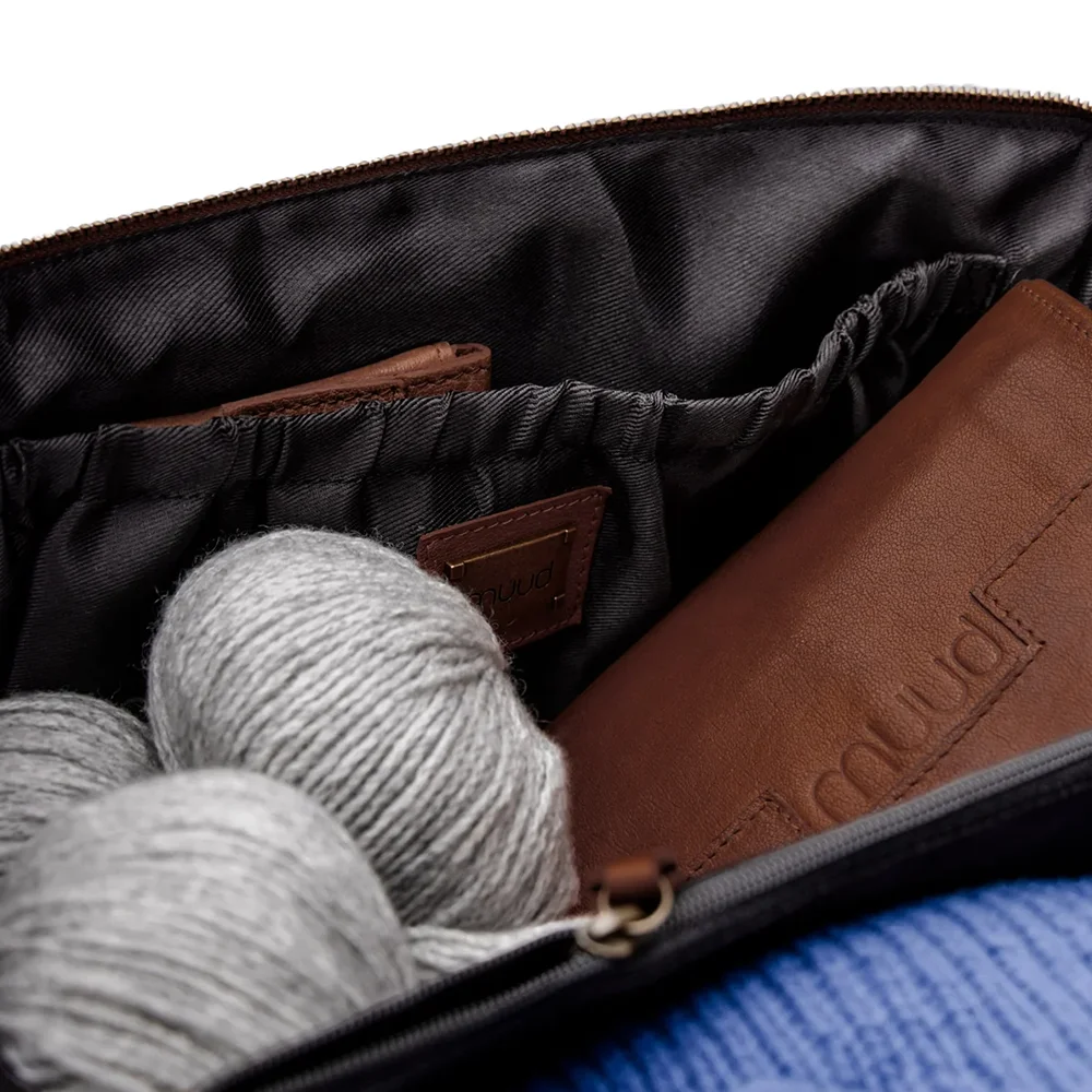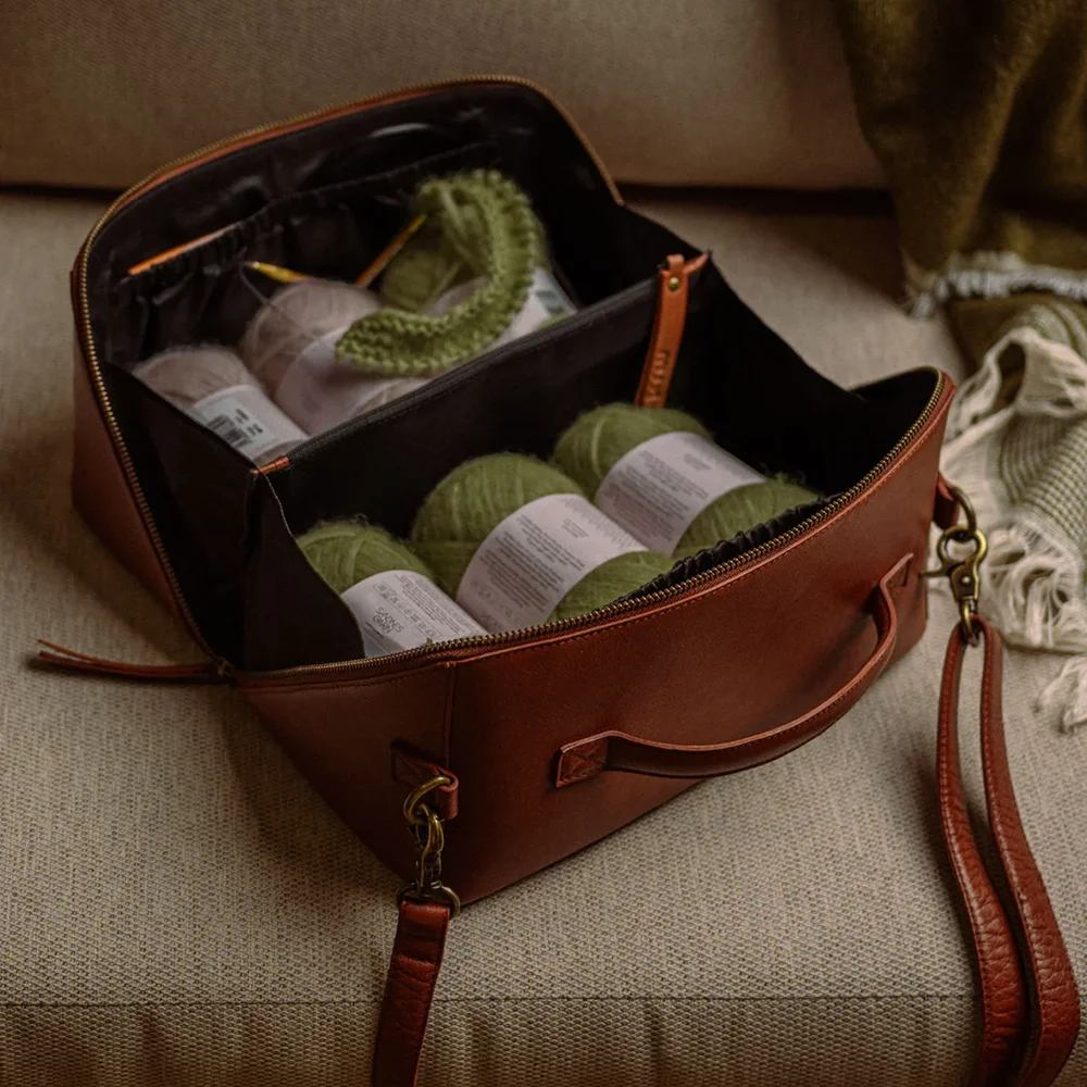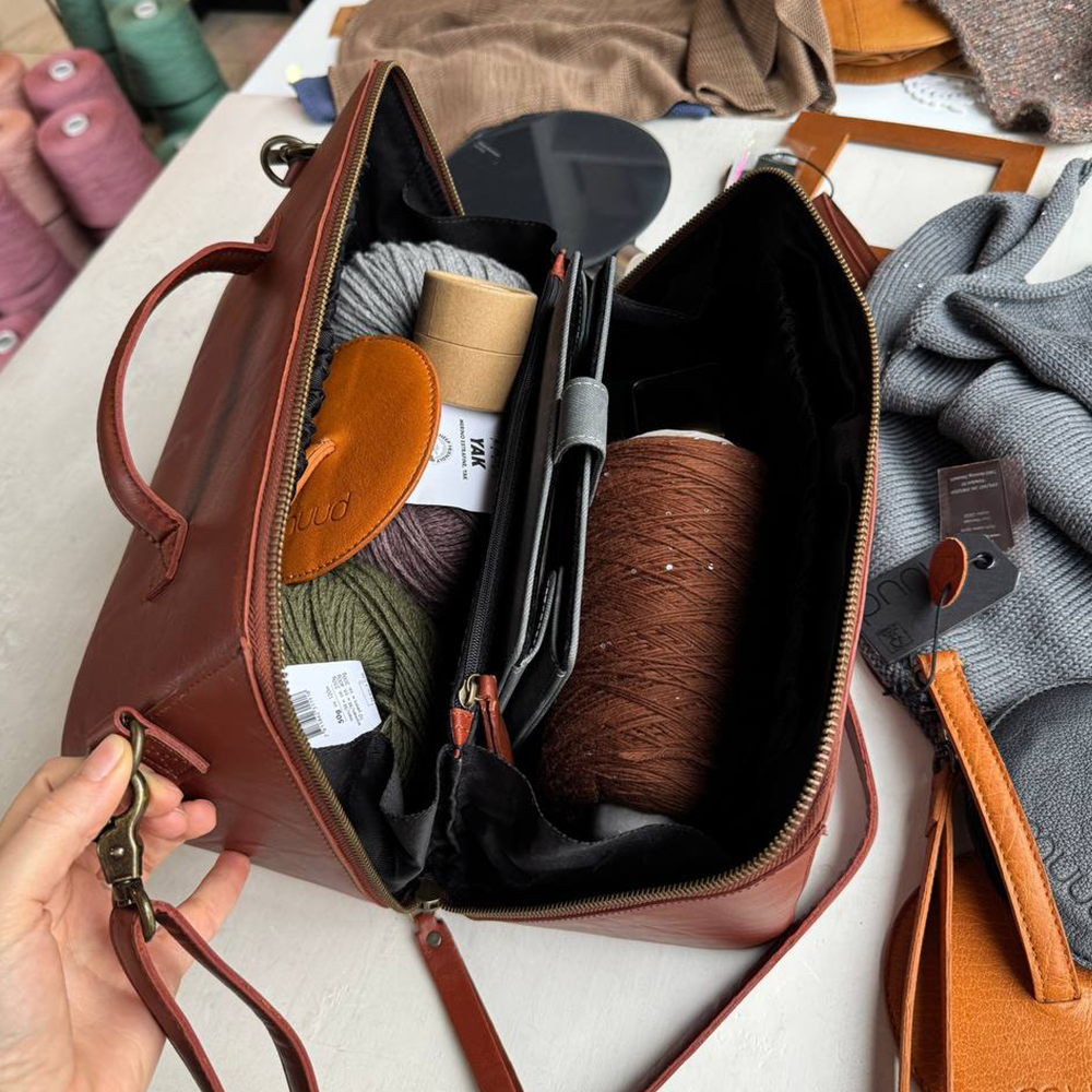 Преимущество Cleo Midi заключается в ее прямоугольной форме: сумка красиво раскрывается и лежит открытой на столе, обеспечивая легкий доступ к инструментам и проектам. Просторное внутреннее пространство имеет два больших отделения для аккуратного хранения необходимых вещей и внутренний карман на молнии для мелких аксессуаров. Благодаря съемному и регулируемому плечевому ремню, Cleo Midi можно носить как через плечо или в руке. Идеально подходит для хранения вязальных принадлежностей и повседневных вещей. Может также послужить стильным спутником во время путешествий. Однозначно, Cleo Midi – находка!