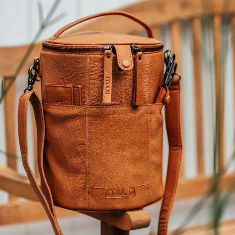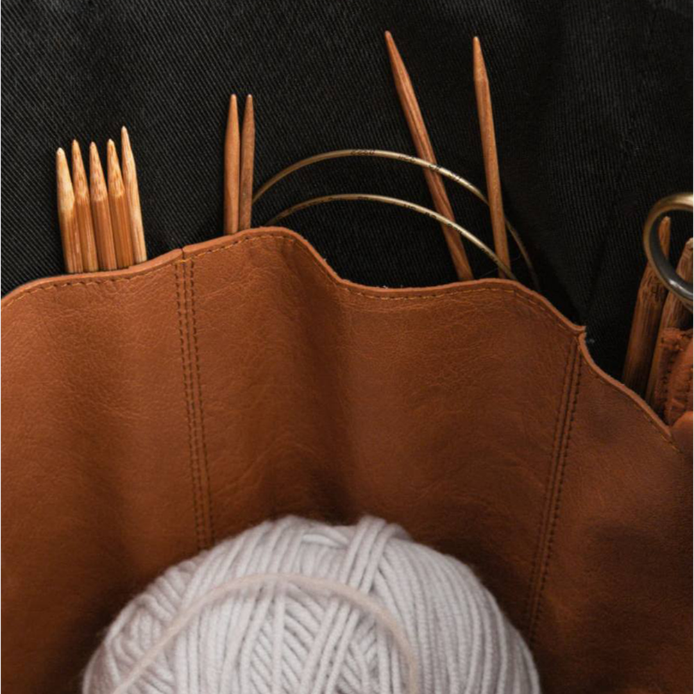 Проектная сумка-органайзер Muud "Saturn XL" Whisky – это стильная сумка ручной работы из натуральной кожи буйвола для бережного хранения всех ваших проектов и принадлежностей для вязания. Сумка цилиндрической формы, с тщательно продуманными деталями, с ней вы сможете легко брать свои творческие проекты. В размер XL свободно поместятся бобина пряжи около 500 г, все необходимые для текущего проекта инструменты и сам проект на любой стадии его готовности. Сумка имеет внешние и внутренние карманы, куда поместится большинство ваших аксессуаров для вязания. Два отверстия сверху позволяют оставить пряжу в сумке, а нити вывести наружу во время вязания и избежать спутывания нитей.