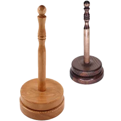 Наиболее распространены приспособления, которые состоят из вращающейся подставки и вертикального стержня. На них надевают бобины, мотки и пасма. Целесообразно купить сразу несколько таких изделий или одно с разным количеством стержней. Такие держатели удобно также использовать для перемотки пряжи. Несколько реже встречаются устройства, в которых стержень горизонтально закрепляют между двумя стойками.