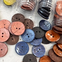 Технология изготовления самих пуговиц уникальна: основа пуговок полируется до блеска и отбеливается, затем на лицевую сторону пуговицы распыляют смолу, которая создает перламутровый эффект с металлическим блеском, и только потом окрашивают водным красителем. Каждая пуговица CONCEPT своеобразна и неповторима по своему рисунку, что придает одежде или аксессуару самобытность и индивидуальность. Как раз эта особенность (эксклюзивность каждой пуговки) поможет сочетать их как с верхней одеждой, например, с пальто в повседневном стиле или с вязаными рустикальными свитерами и кардиганами. Пуговицы CONCEPT станут отличным декоративным элементом на сумках, шляпках и других аксессуарах.