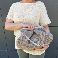 Удобная, небольшая, но вместительная сумка способна заменить как повседневный вариант для похода на работу, так может использоваться как вечерний клатч – все зависит от пряжи, которую вы подберете для обвязывания фурнитуры.