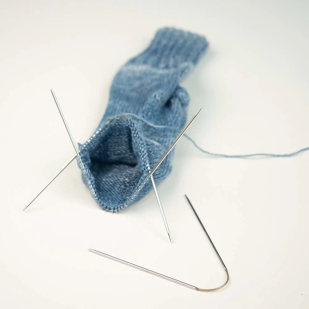 Набор из 3-х гнущихся чулочных спиц позволит без труда вывязывать модели самого маленького размера. Петли распределяются по двум спицам и провязываются при помощи третьей спицы - то есть в ряду надо менять только две спицы. Петли располагаются на гибком соединении, благодаря чему они не соскальзывают со спиц. Гибкая средняя часть позволяет удобно держать спицы в руках. Два вида спиц BASIC и LACE с заостренными кончиками, подходят для любой пряжи. Можно использовать в качестве вспомогательной спицы для вывязывания кос. Разумеется, «Сделано в Германии»!