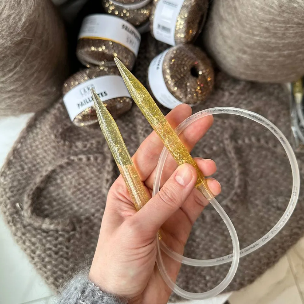 Улучшенная поверхность, которая дает дополнительное скольжение пряжи при вязании. Кончики спиц закругленные.
