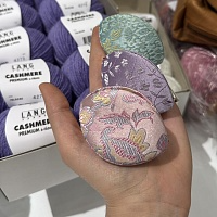 Чехол изготовлен из красивой парчи и отделан шёлком, что делает его по-настоящему роскошным местом для хранения ваших любимых мелочей для вязания и шитья. Его размеры составляют 8 см в ширину, 5 см в глубину и 5 см в высоту, поэтому он идеально поместится в вашей сумке для вязания или кошельке.