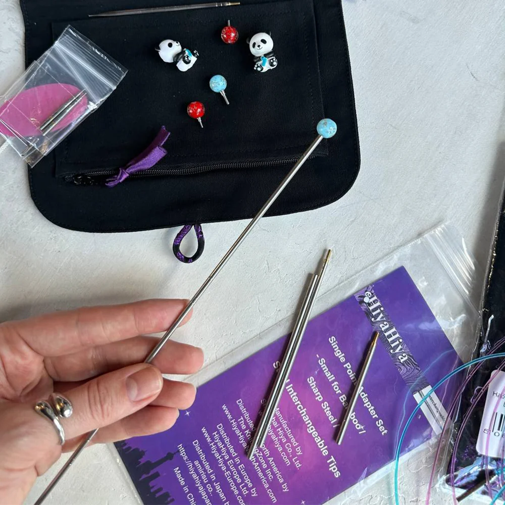 Впервые в мире HiyaHiya предлагает концепцию съемных прямых спиц. Они совместимы со съемными лесками, наконечниками и аксессуарами (включая адаптеры наконечников и разъемы для лесок).
