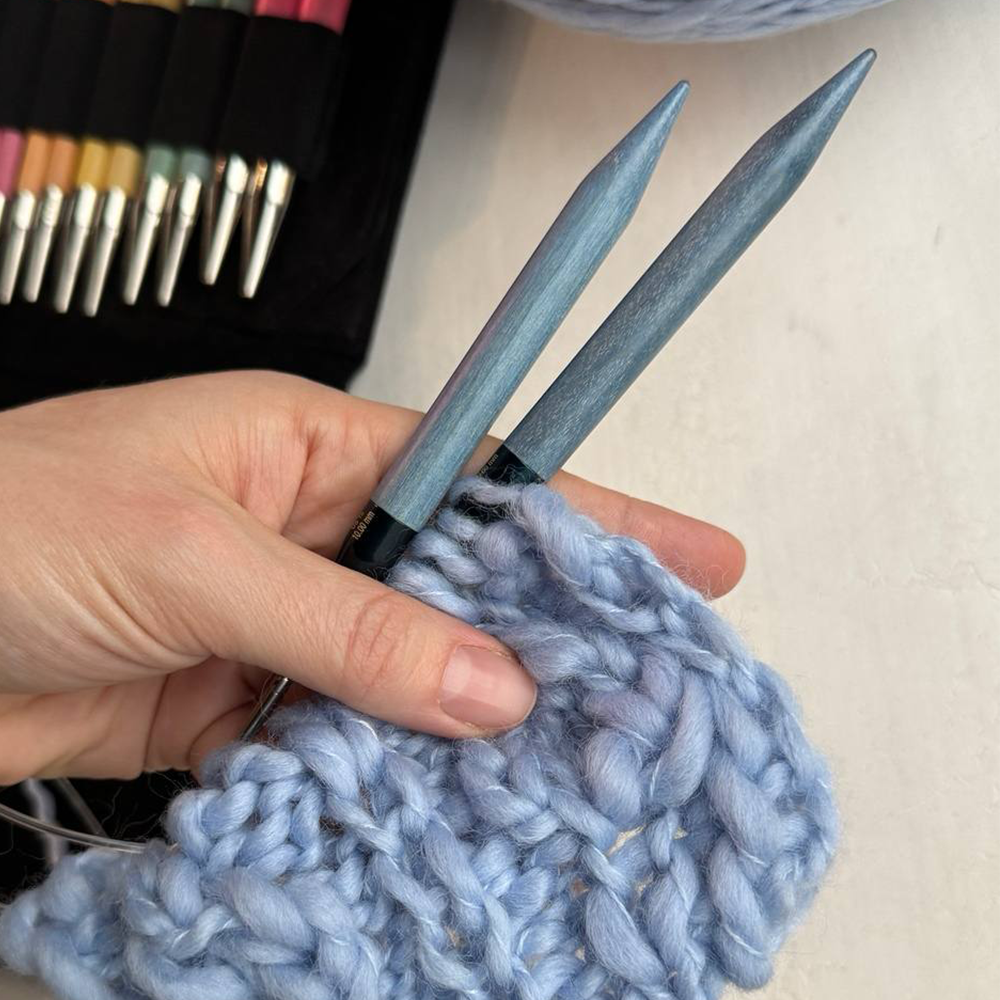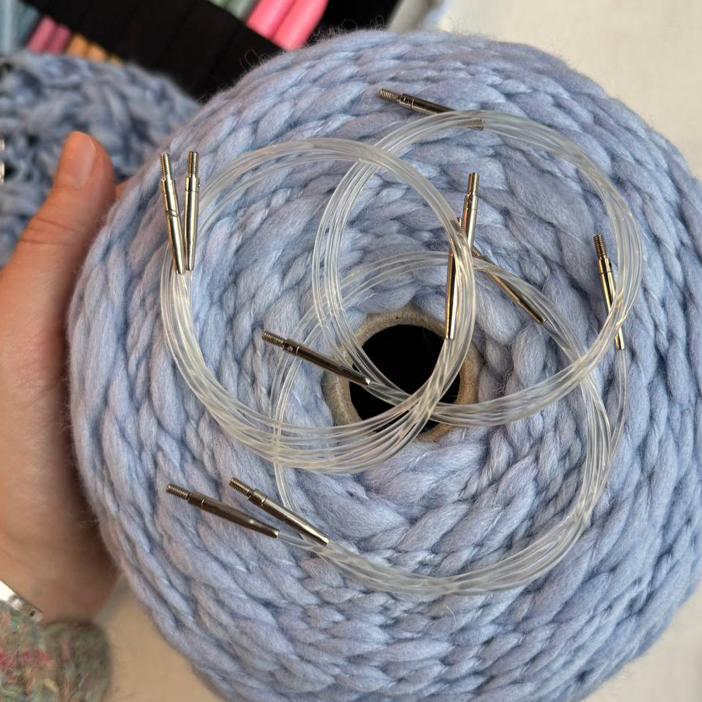 Набор спиц классической длины, 12 см., и полным комплектом лесок, которые можно соединять между собой для вязания особенно крупных изделий.