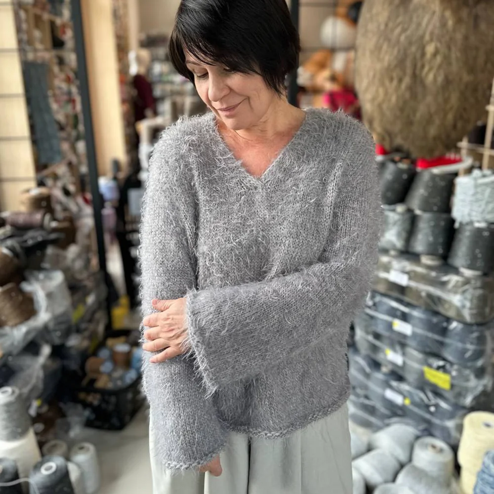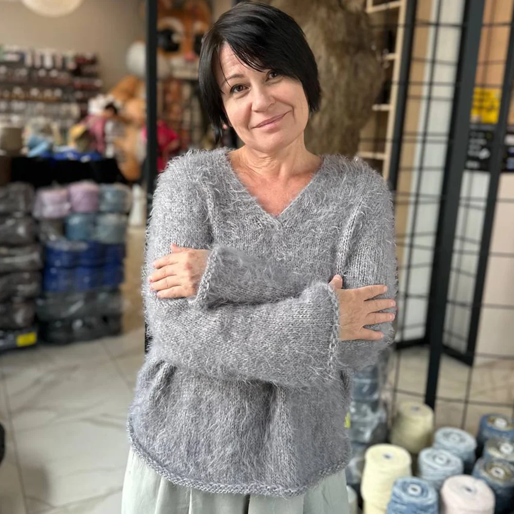 Вязание сверху вниз позволяет легко корректировать длину рукавов и изделия в процессе вязания.