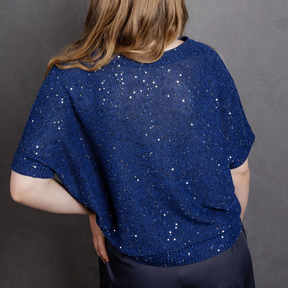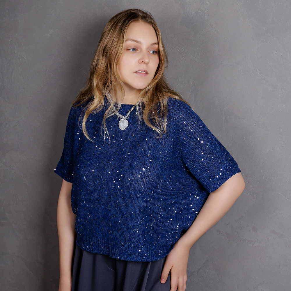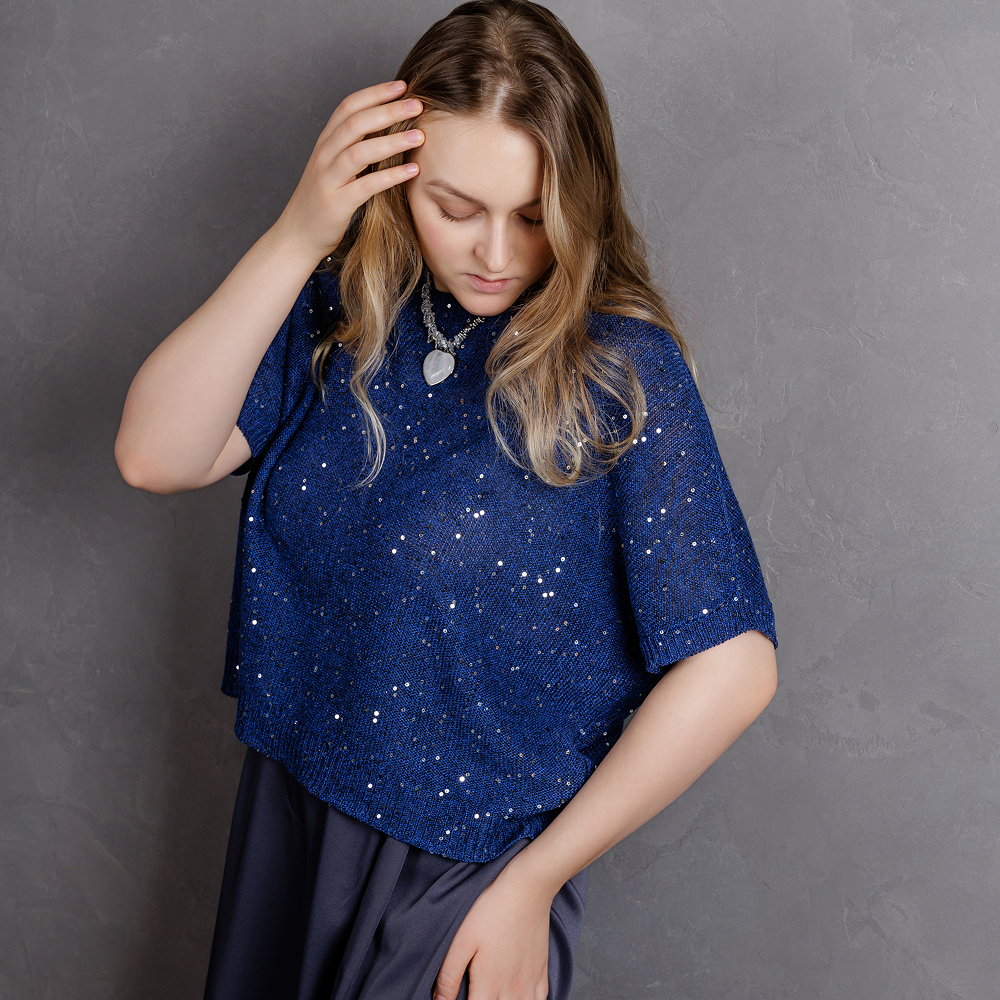 - Футболка связана отдельными деталями снизу вверх, спинка и перед, затем сшита;