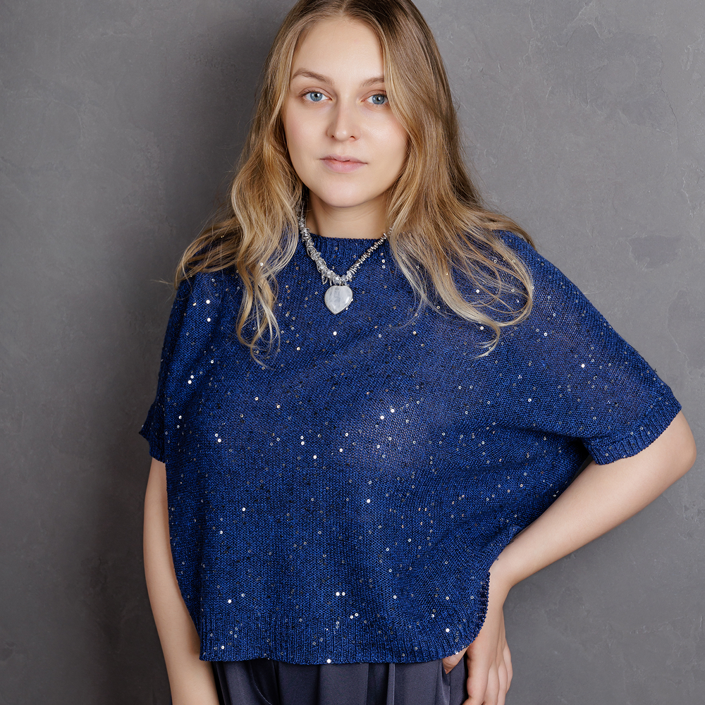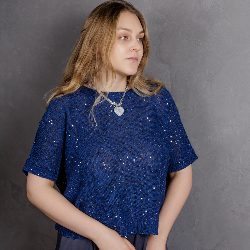 - Бобина Micromerinos (95% меринос, 5% пайетки, 650 м/100 г) в 1 нить – 400/450/500 г