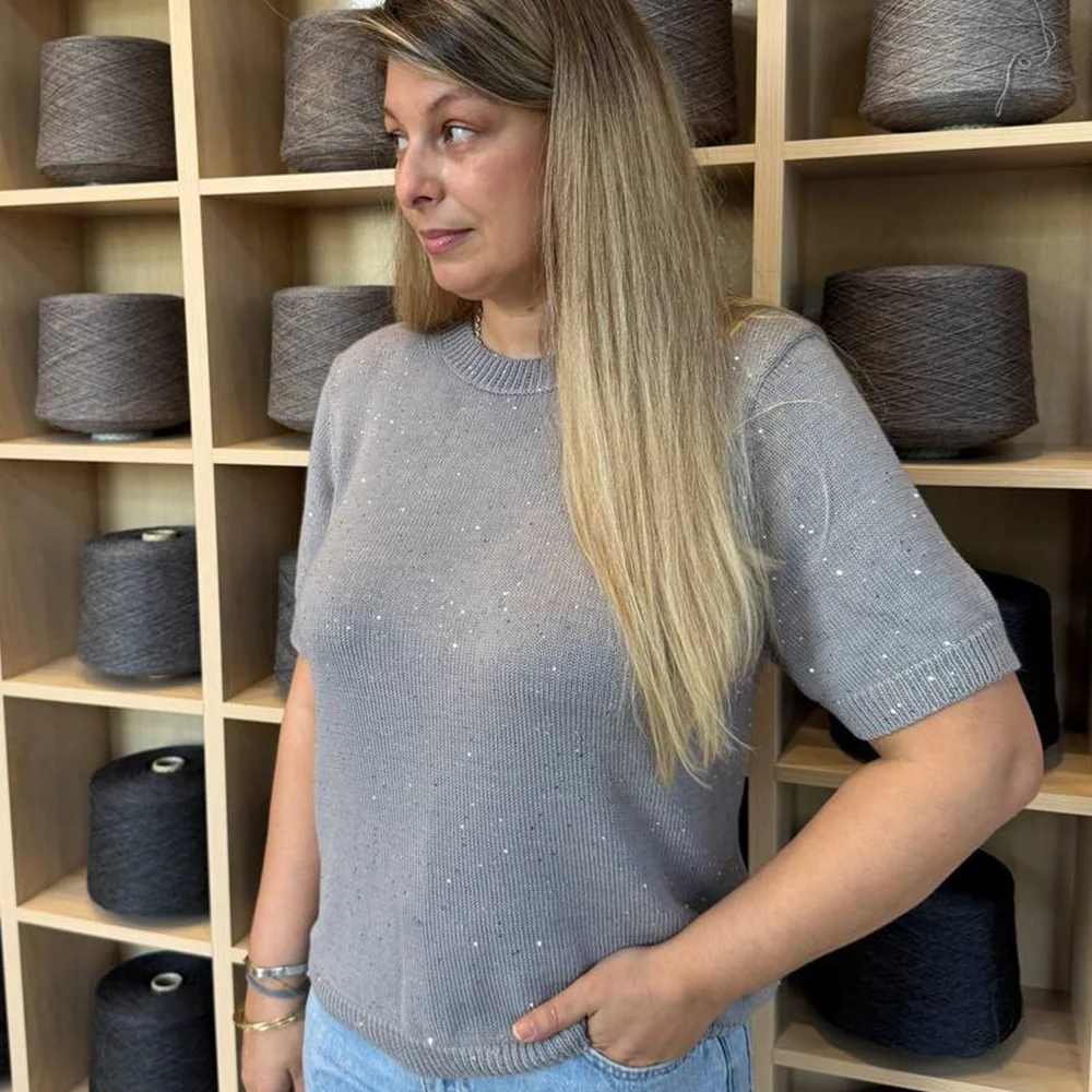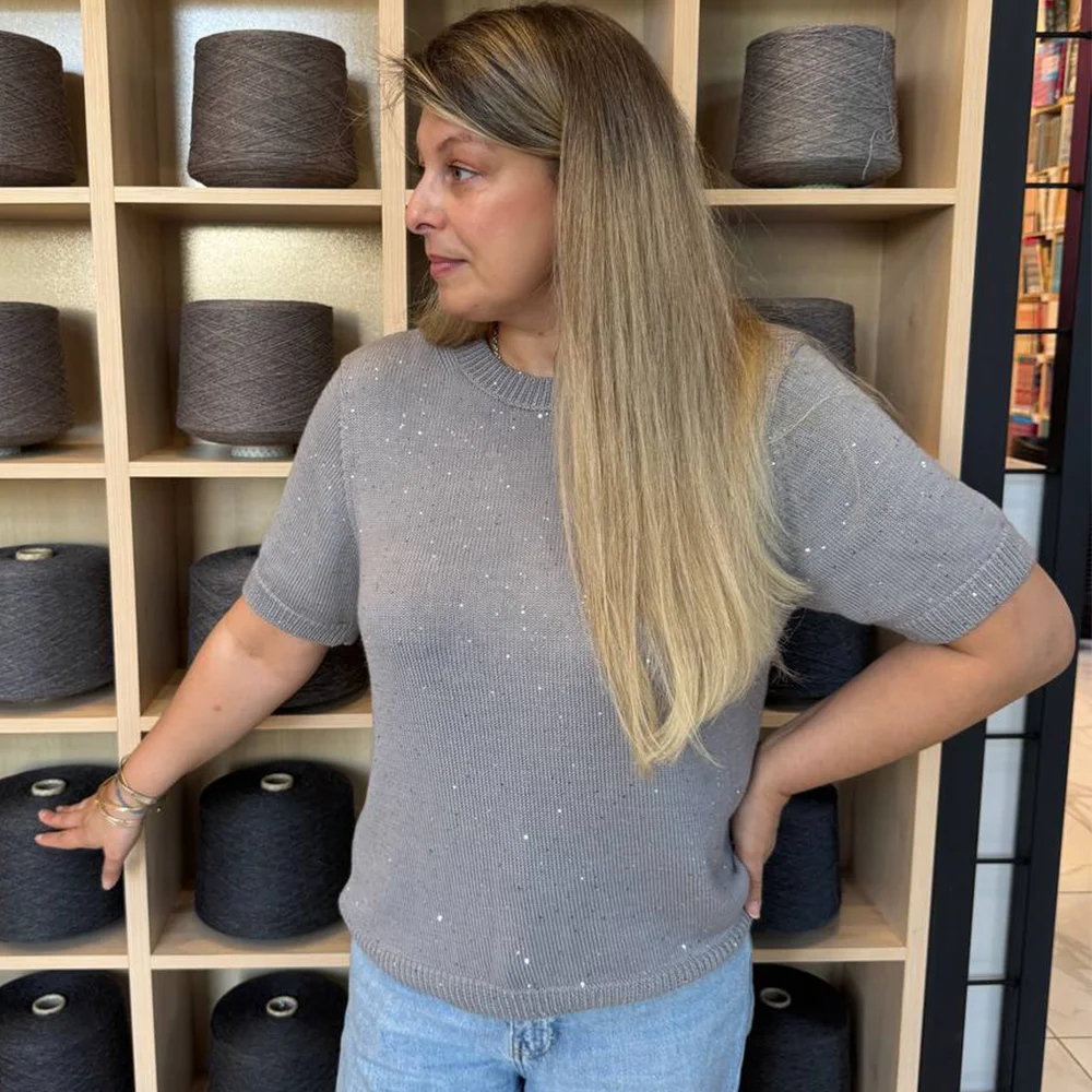 - Бобина Micromerinos (95% меринос, 5% пайетки, 650 м/100 г) в 2 нити – 300/350/400/450 г