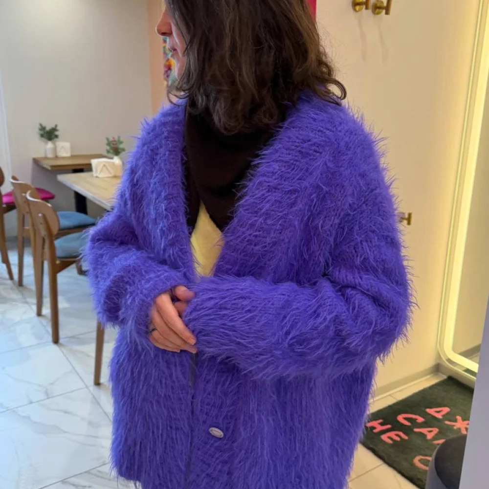 Кардиган_Падла_Мини – акцентное изделие, которое сразу притягивает взгляд и делает образ запоминающимся. Необычная пушистая текстура создаёт эффект мягкого облака, придавая изделию дизайнерский характер. Особое сочетание 50% мериноса и 50% полиамида делает кардиган не только эффектным, но и практичным. Меринос отвечает за тепло, мягкость и комфорт, а полиамид – за износостойкость, стабильность формы и лёгкость изделия. Благодаря этому кардиган тёплый, но не тяжёлый, пушистый, но при этом хорошо держит внешний вид даже при активной носке.