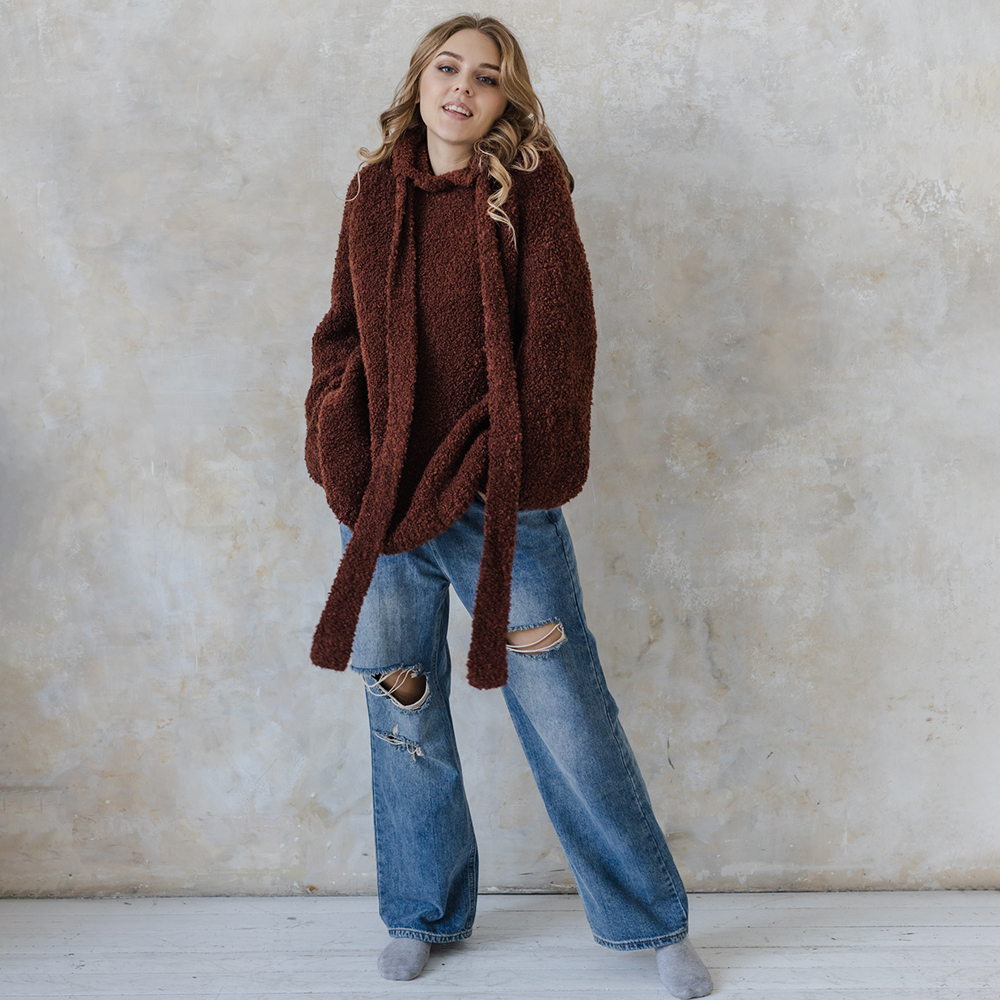 Худи с капюшоном в стиле OverSize станет любимой вещью вашего гардероба, а полностью сшивная конструкция превратит вязание в увлекательный процесс.