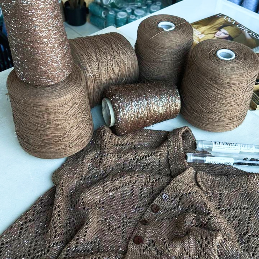 Для дополнительного блеска и сияния в полотне к нити Cotolino можно добавить