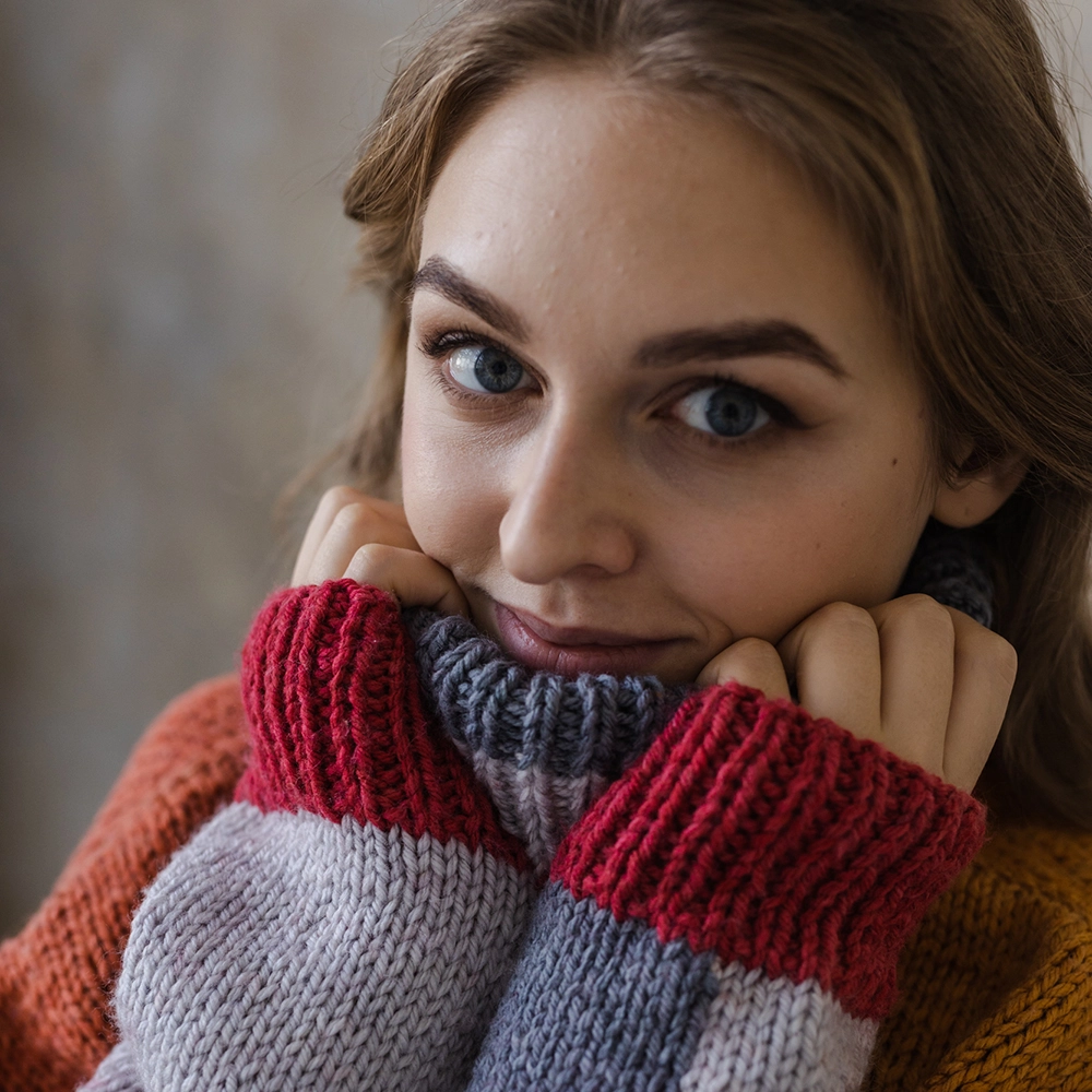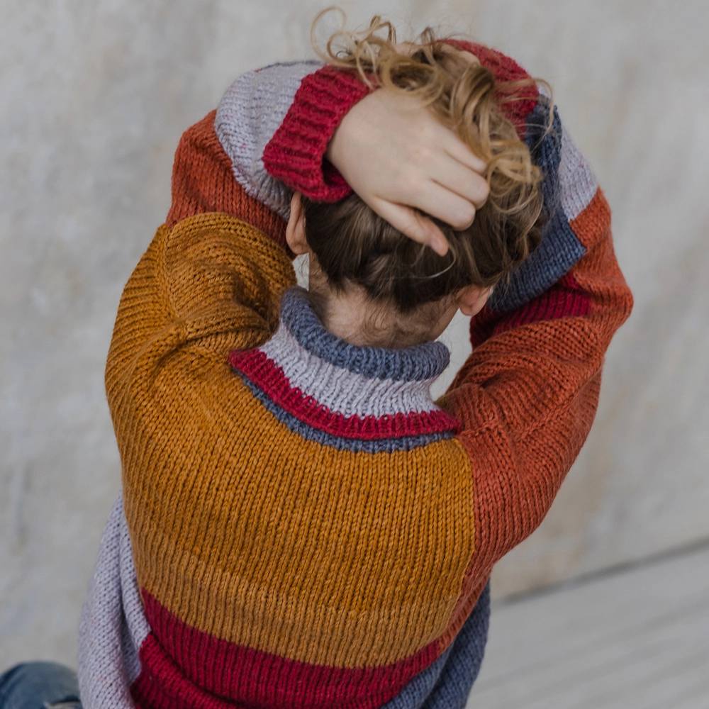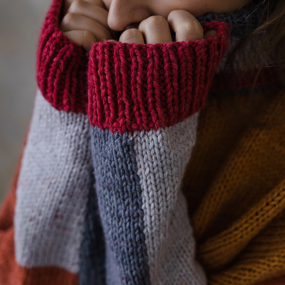 Для вязания в технике колор блок можно использовать не только разные цвета, но и фактуры, и рисунки.