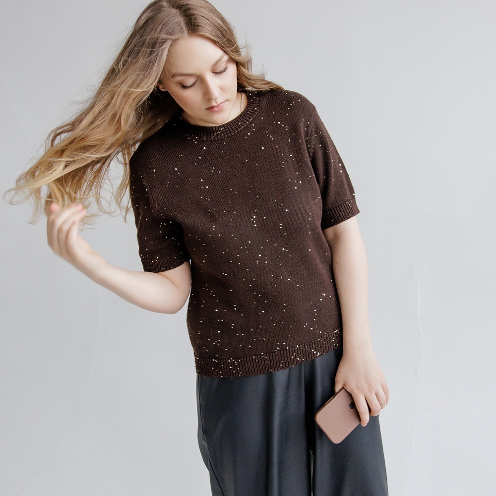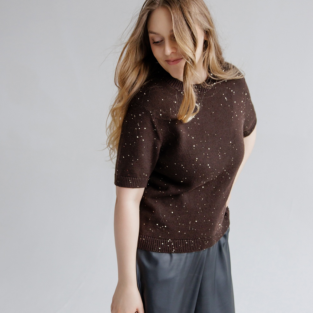 Предлагаем вам связать своими руками футболку СИСИК – сочетание классического кроя и натуральных материалов. Универсальная базовая модель сочетает в себе комфорт и элегантность, отлично подходит для создания летних образов. Вместе с тем и в прохладные сезоны вы с удовольствием будете носить, создавая многослойные образы, а нежное мерцание позволит включить футболку в вечерний гардероб.