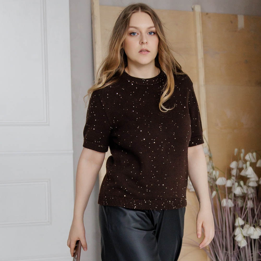 - Бобина Kachinelli Merino (85% меринос, 4% хлопок, 11% пайетки, 300 м/100 г) в 1 нить на 44-46 / 48-50 / 52-54 / 56-58 – 300/350/400/450 г