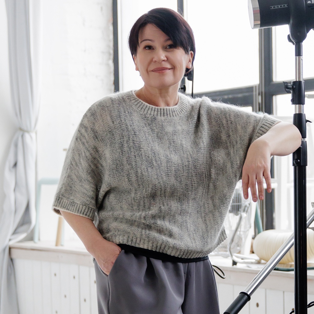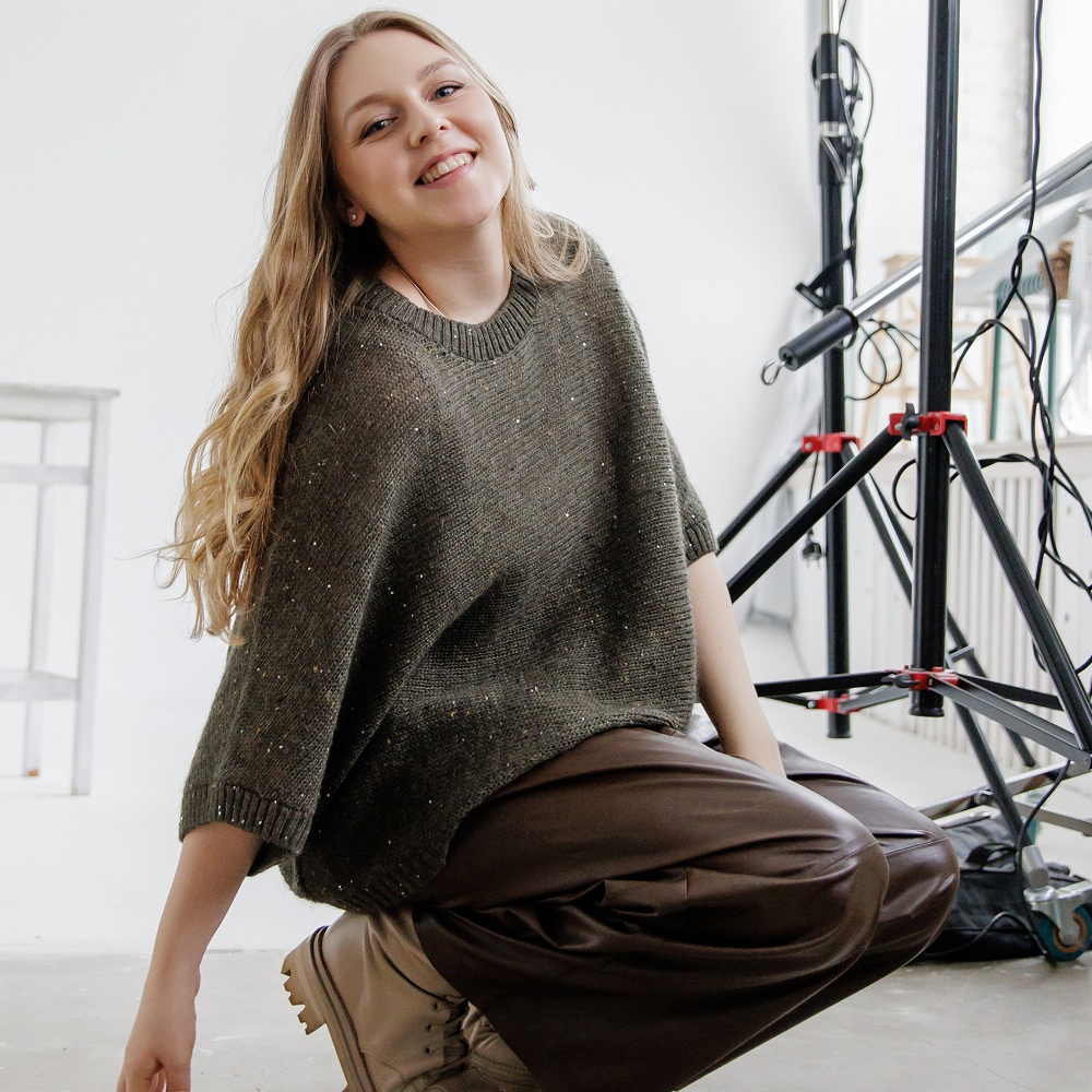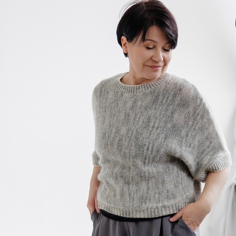 - Вязание поперек создает силуэт изделия, который подойдет на любую фигуру