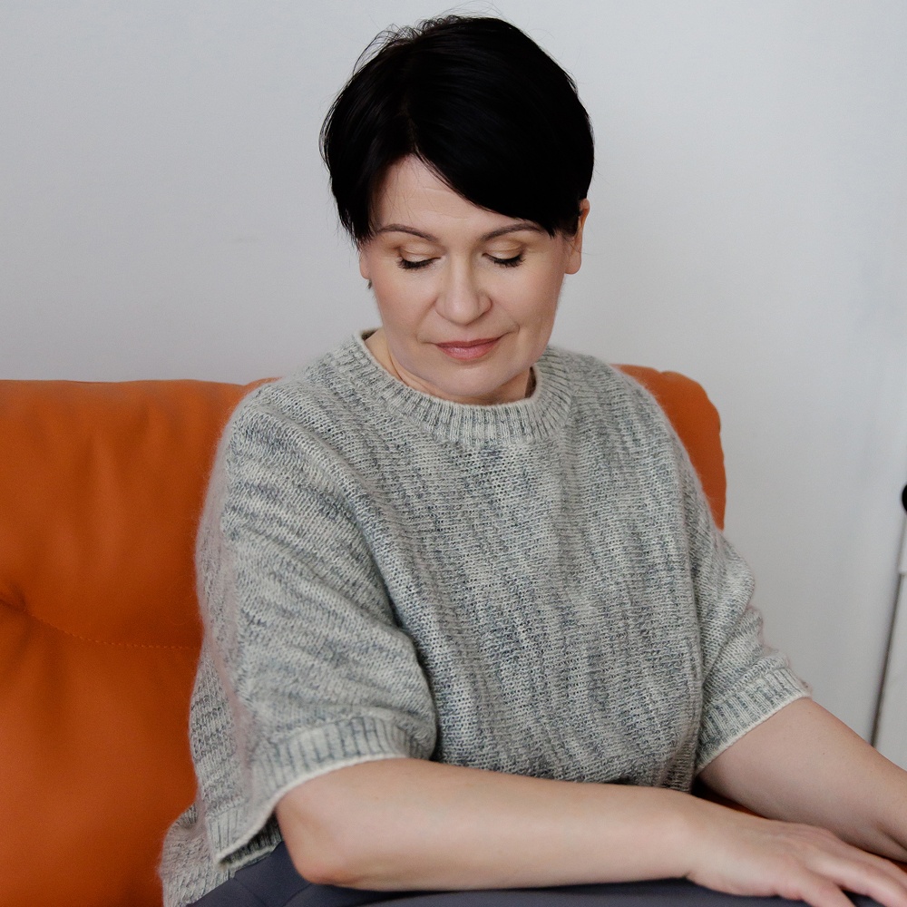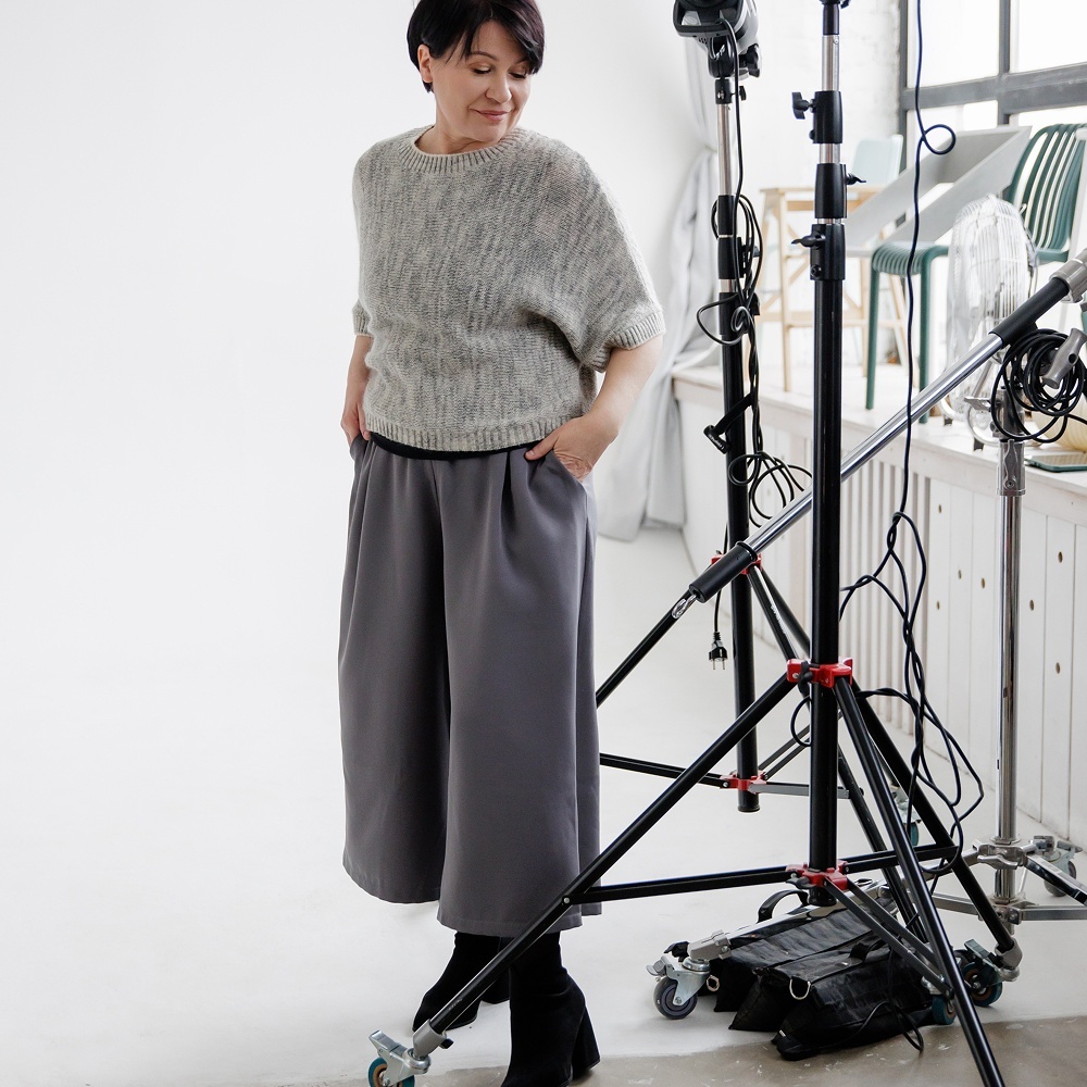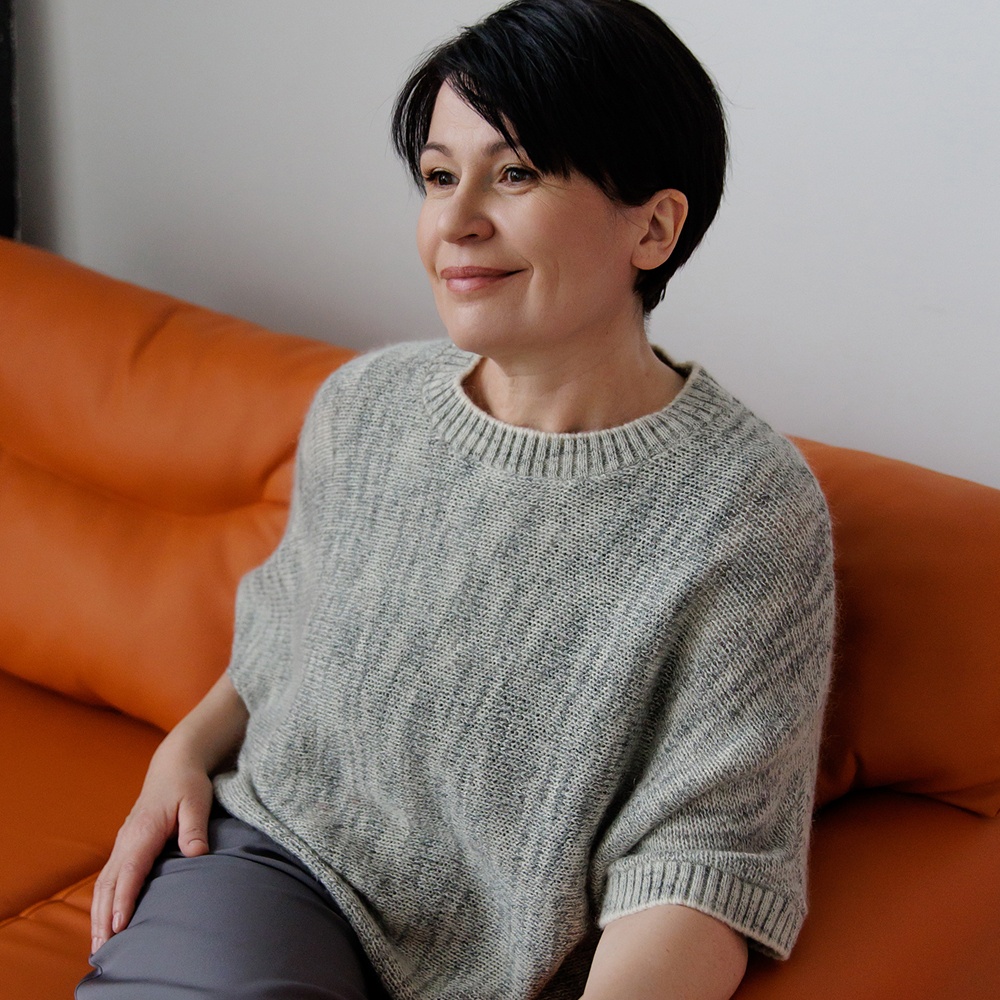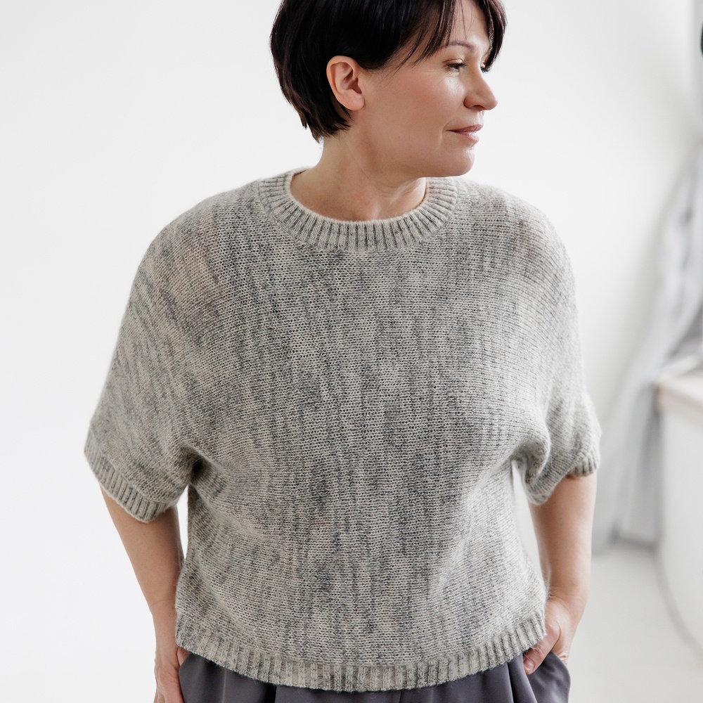 - Вязание поперек создает силуэт изделия, который подойдет на любую фигуру