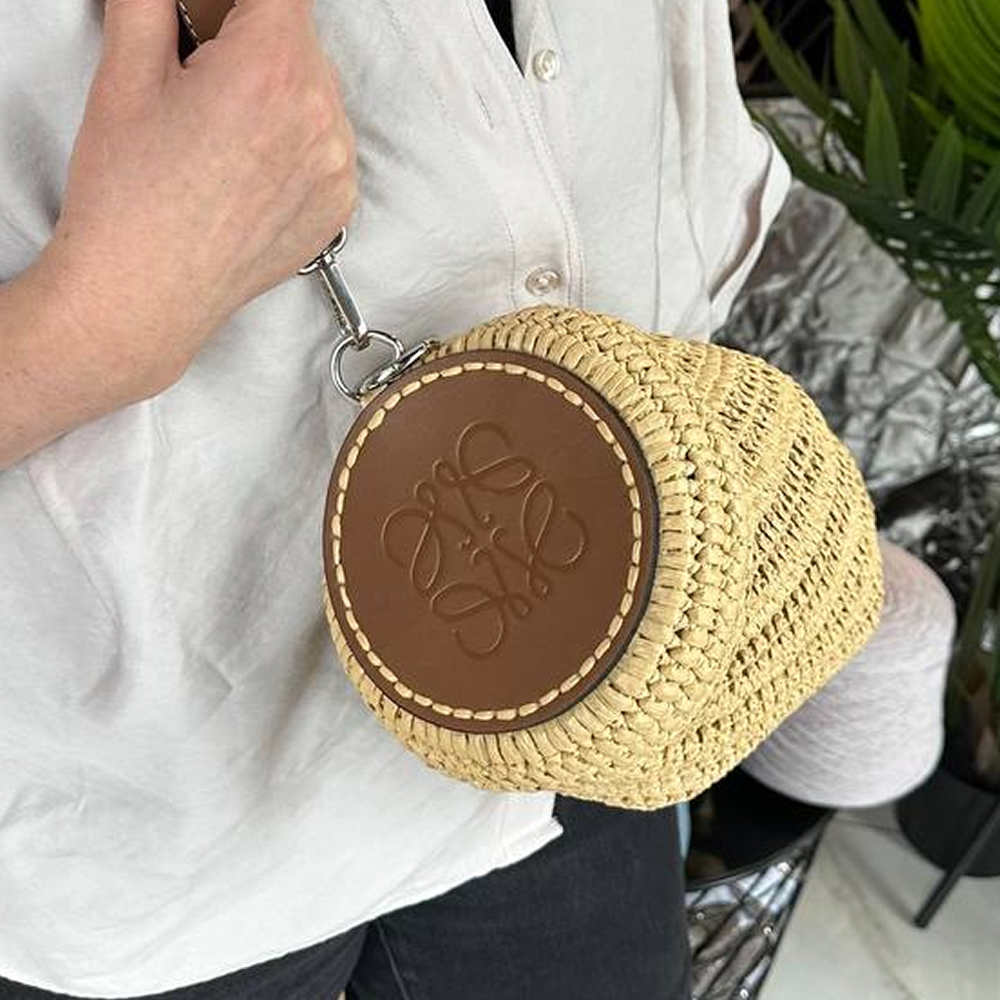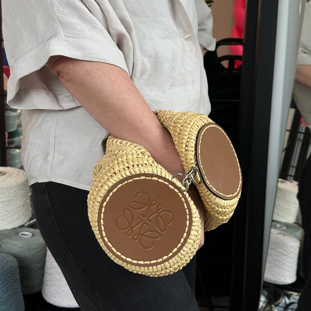 Предлагаем связать точную копию сумки Loewe Ibiza из рафии оригинальной круглой формы.