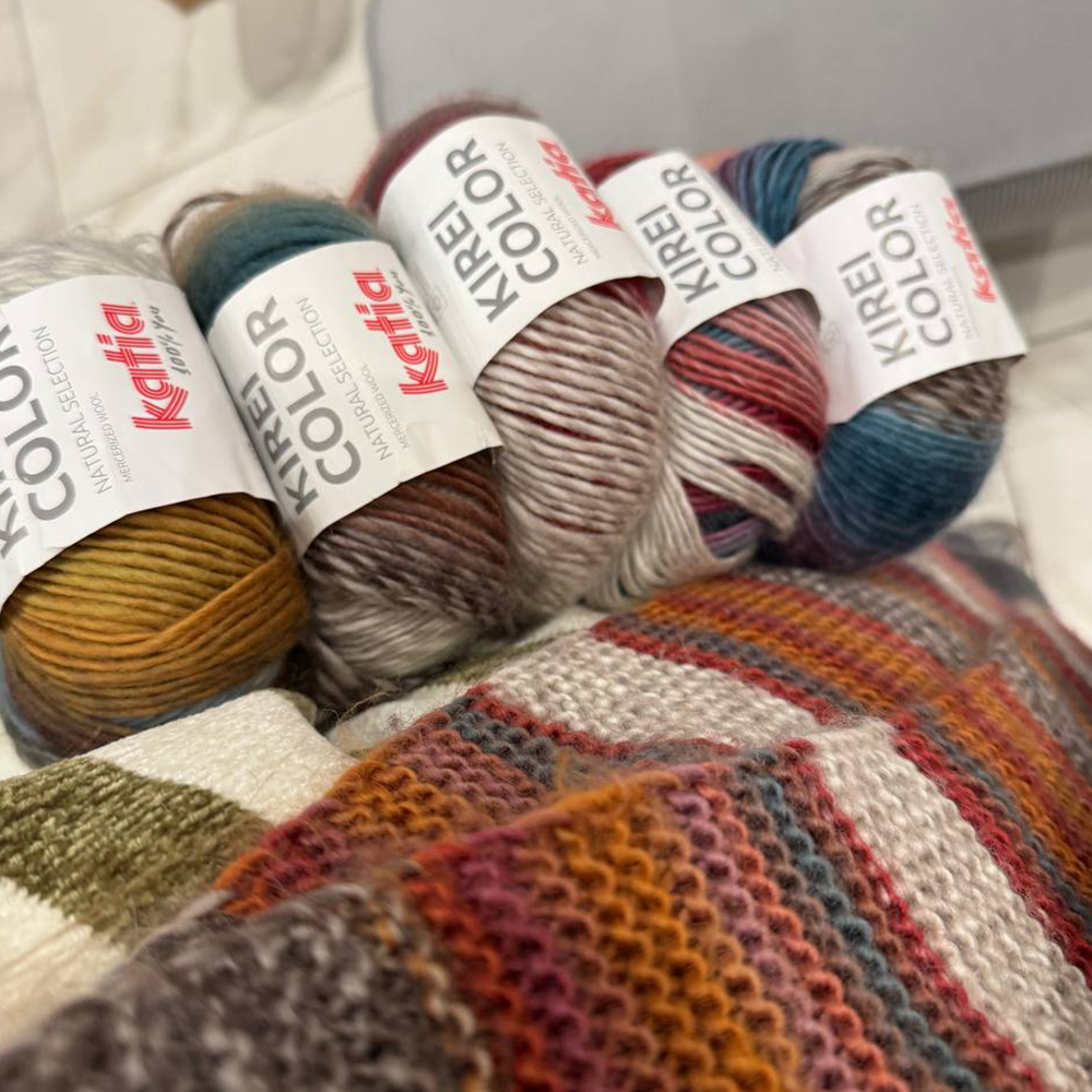Пряжа секционного крашения Katia Kirei Color (Катиа Киреи Колор) предназначена для ручного вязания разноцветных вещей в полоску или с яркими цветовыми пятнами. Наиболее эффектно выглядит в лицевой глади.