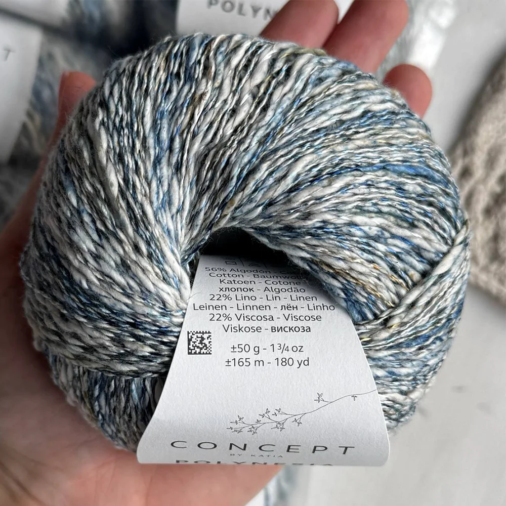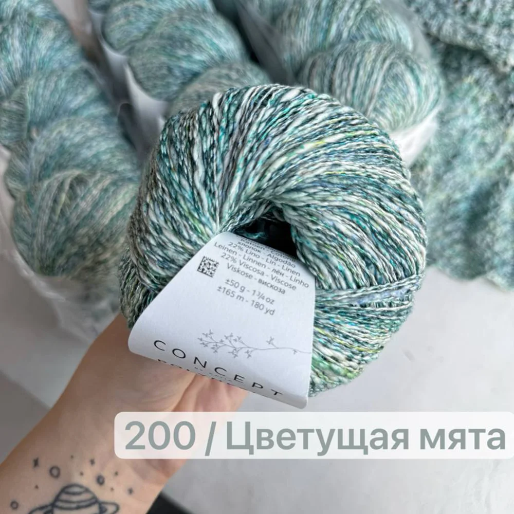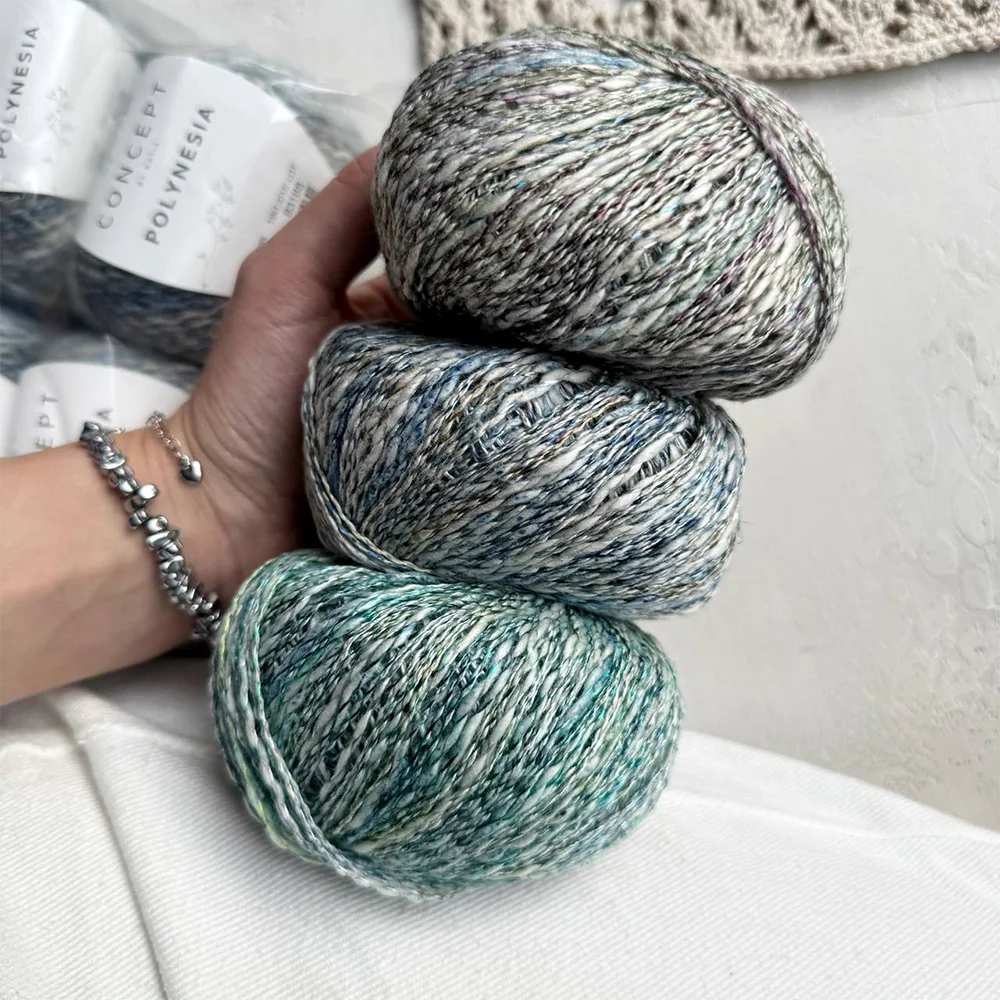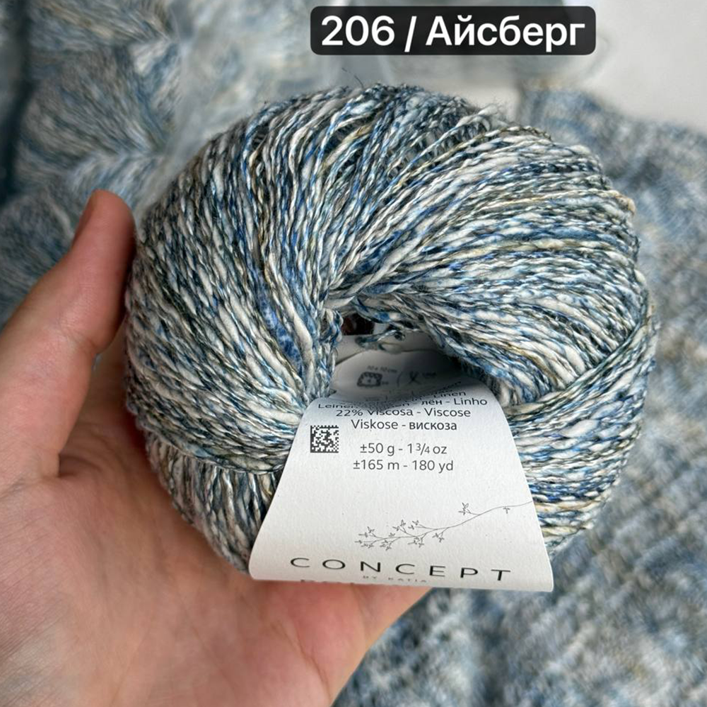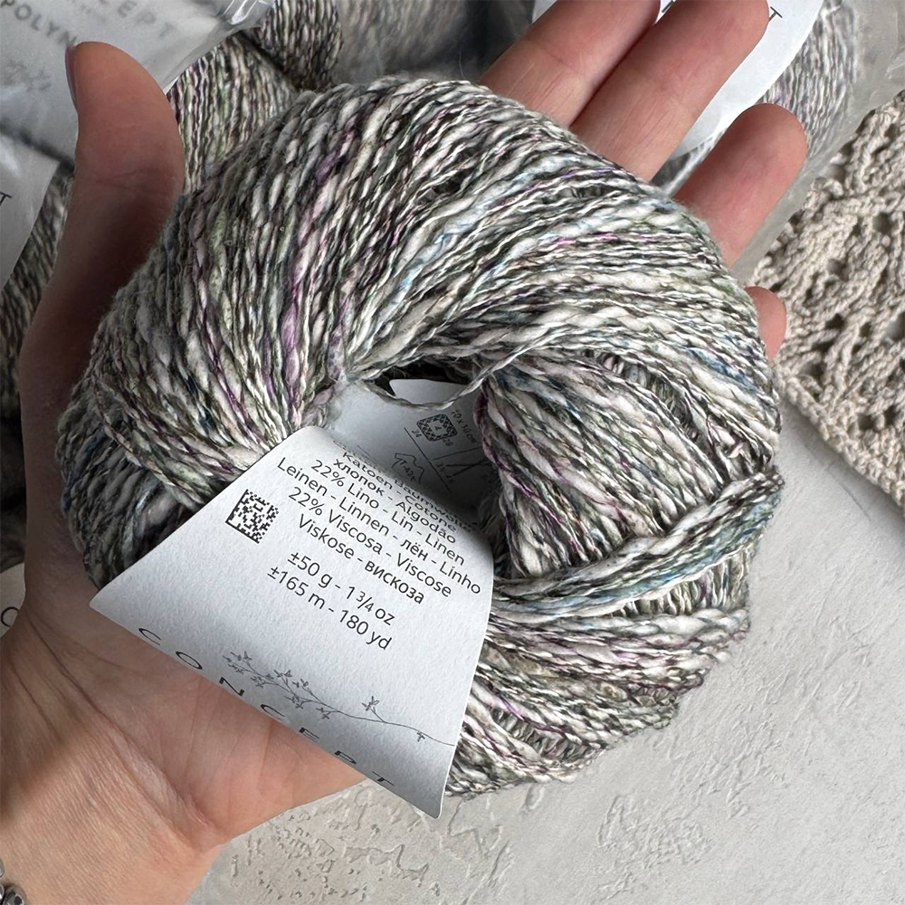 Гармонично сплетена из трех нитей, прекрасно дополняющих друг друга: хлопковая нить рыхлой крутки, которую обвивает блестящая нить конопли, дополняет этот союз тонкая льняная нить.