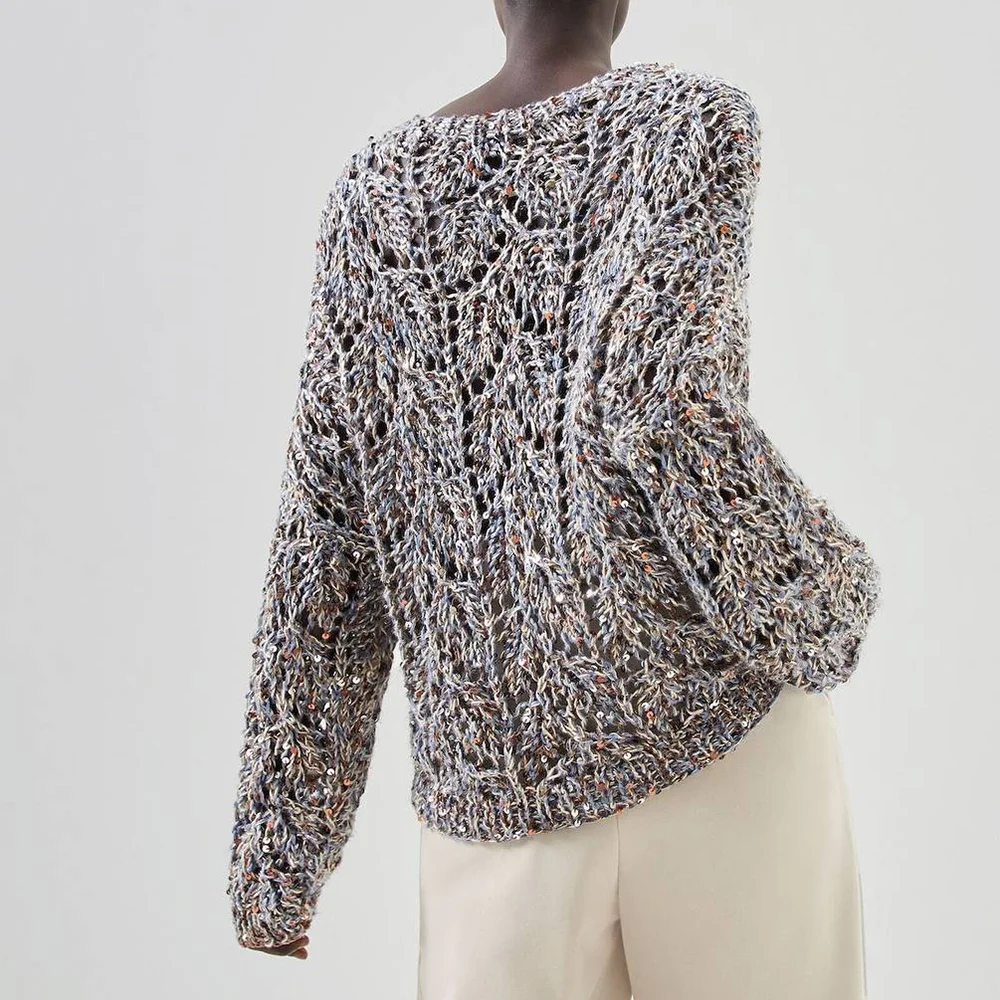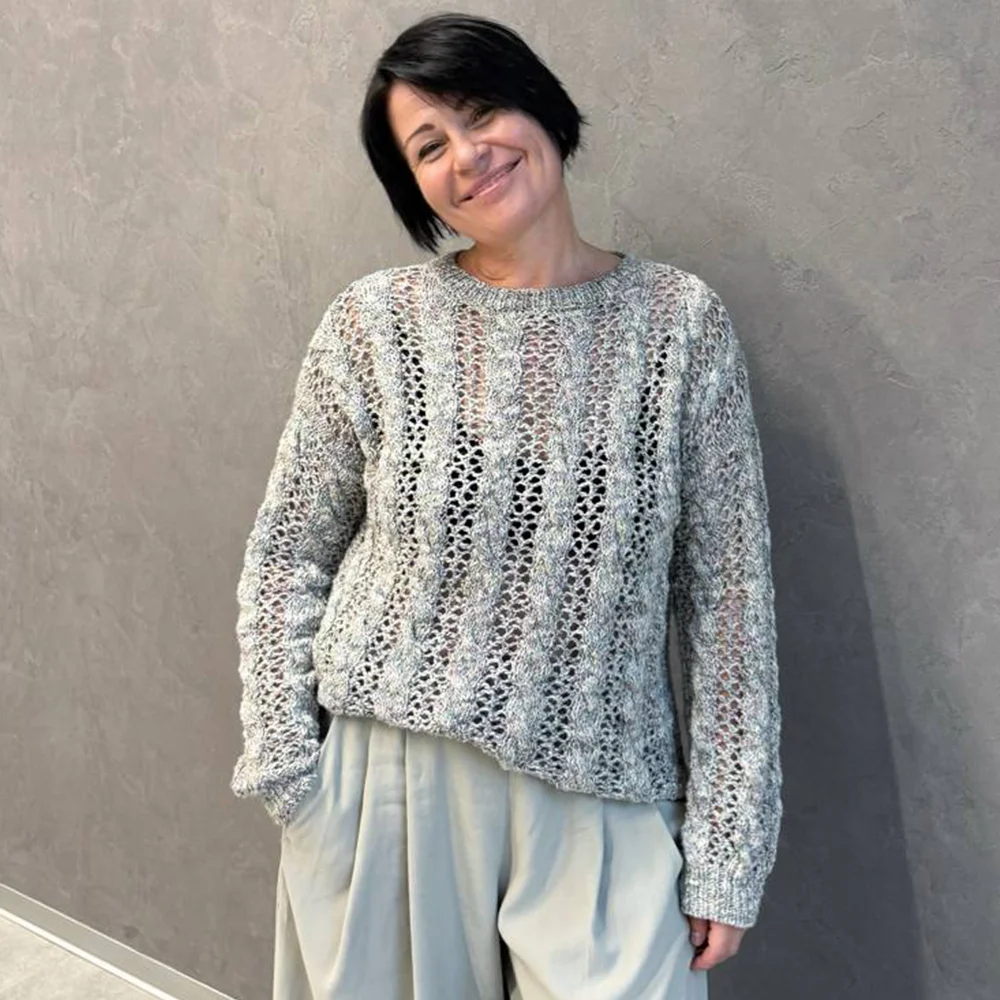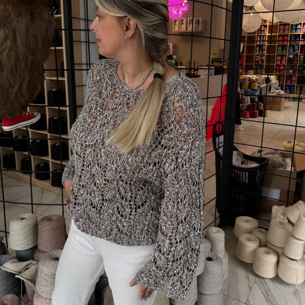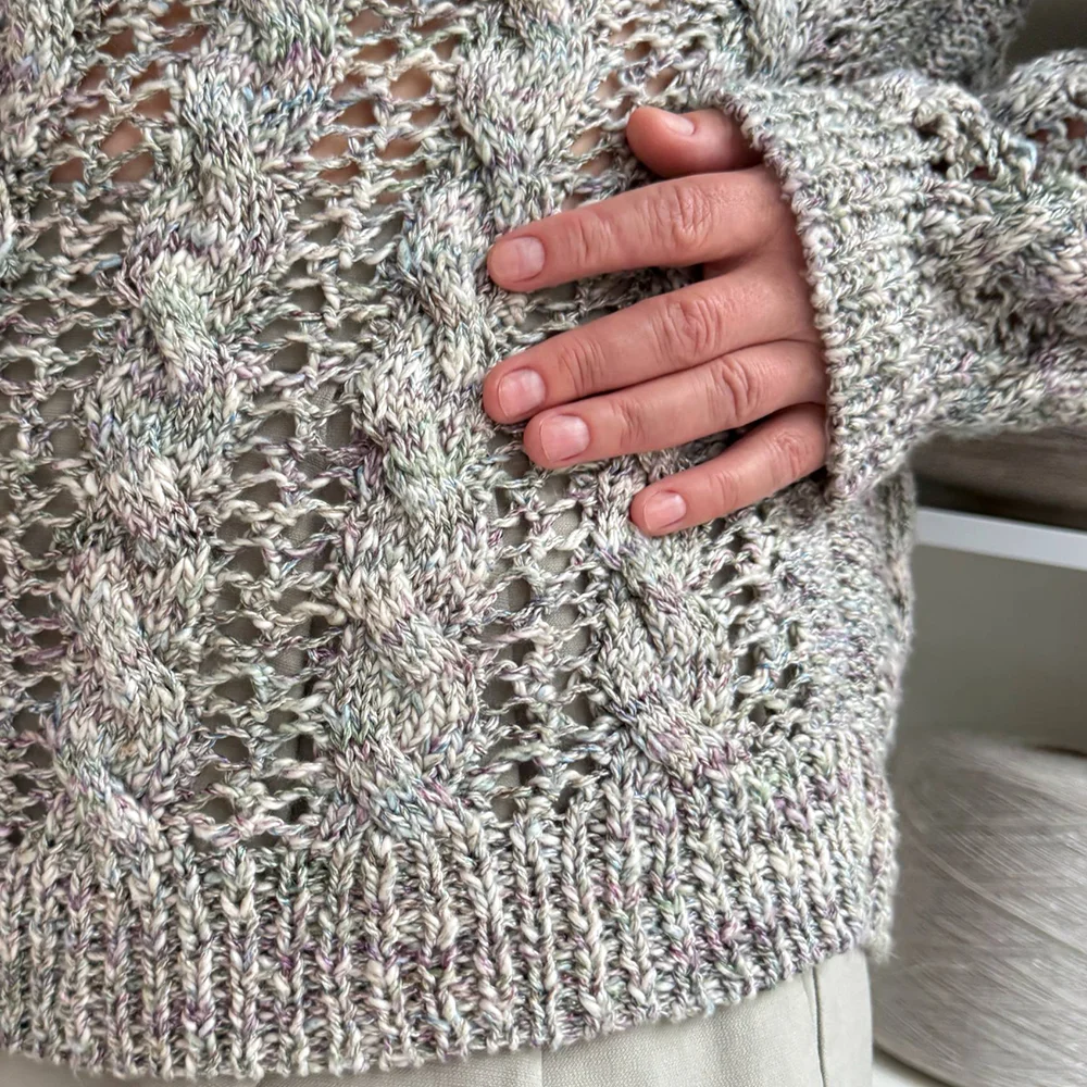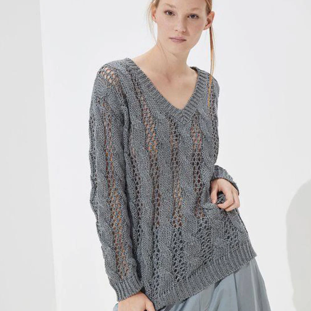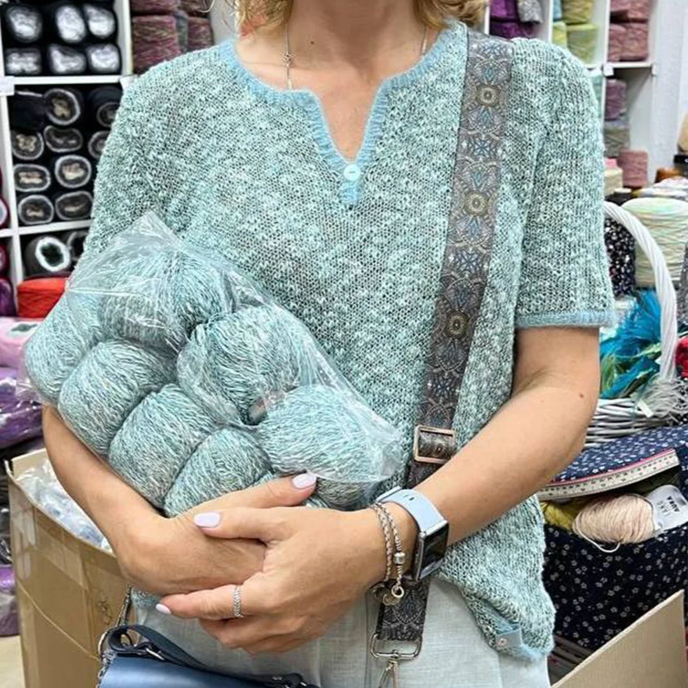 Гармонично сплетена из трех нитей, прекрасно дополняющих друг друга: хлопковая нить рыхлой крутки, которую обвивает блестящая нить конопли, дополняет этот союз тонкая льняная нить.