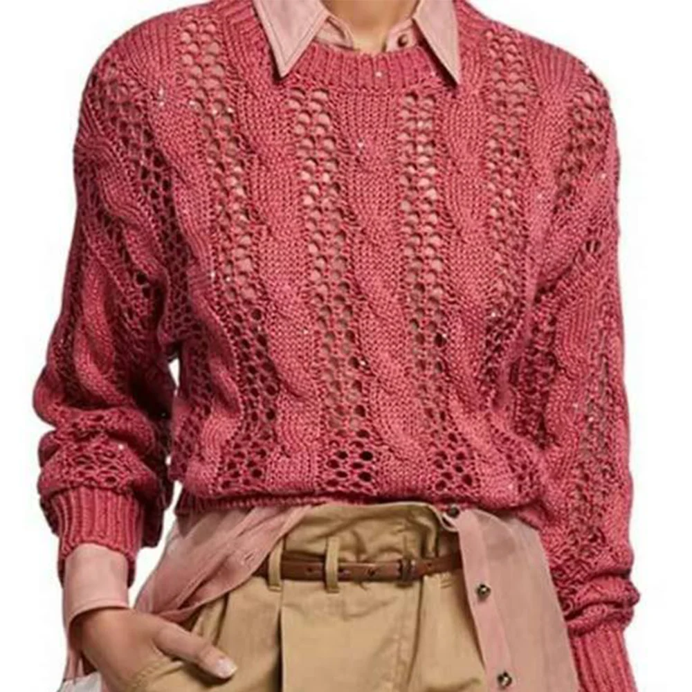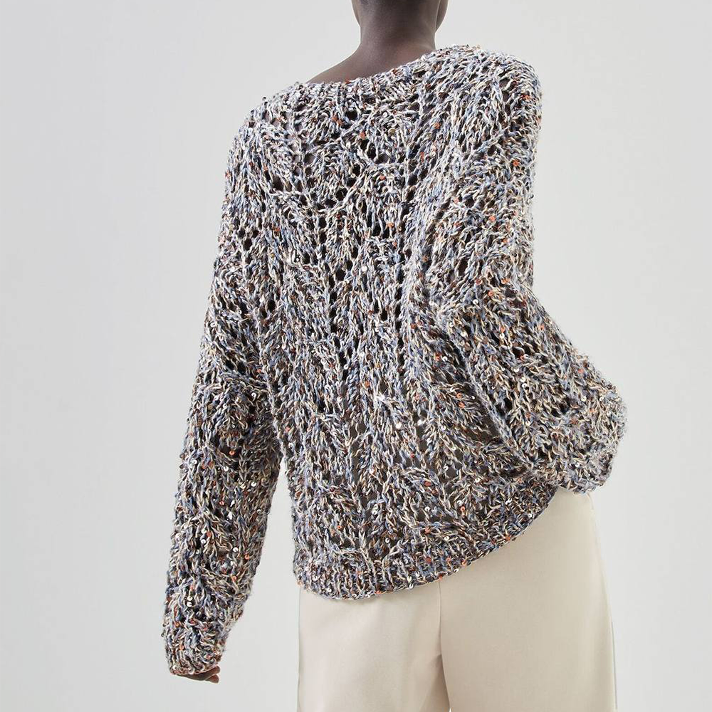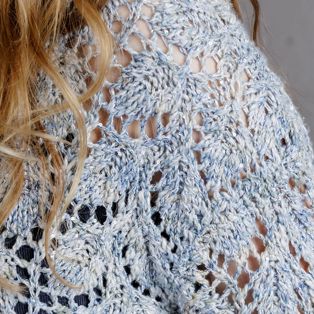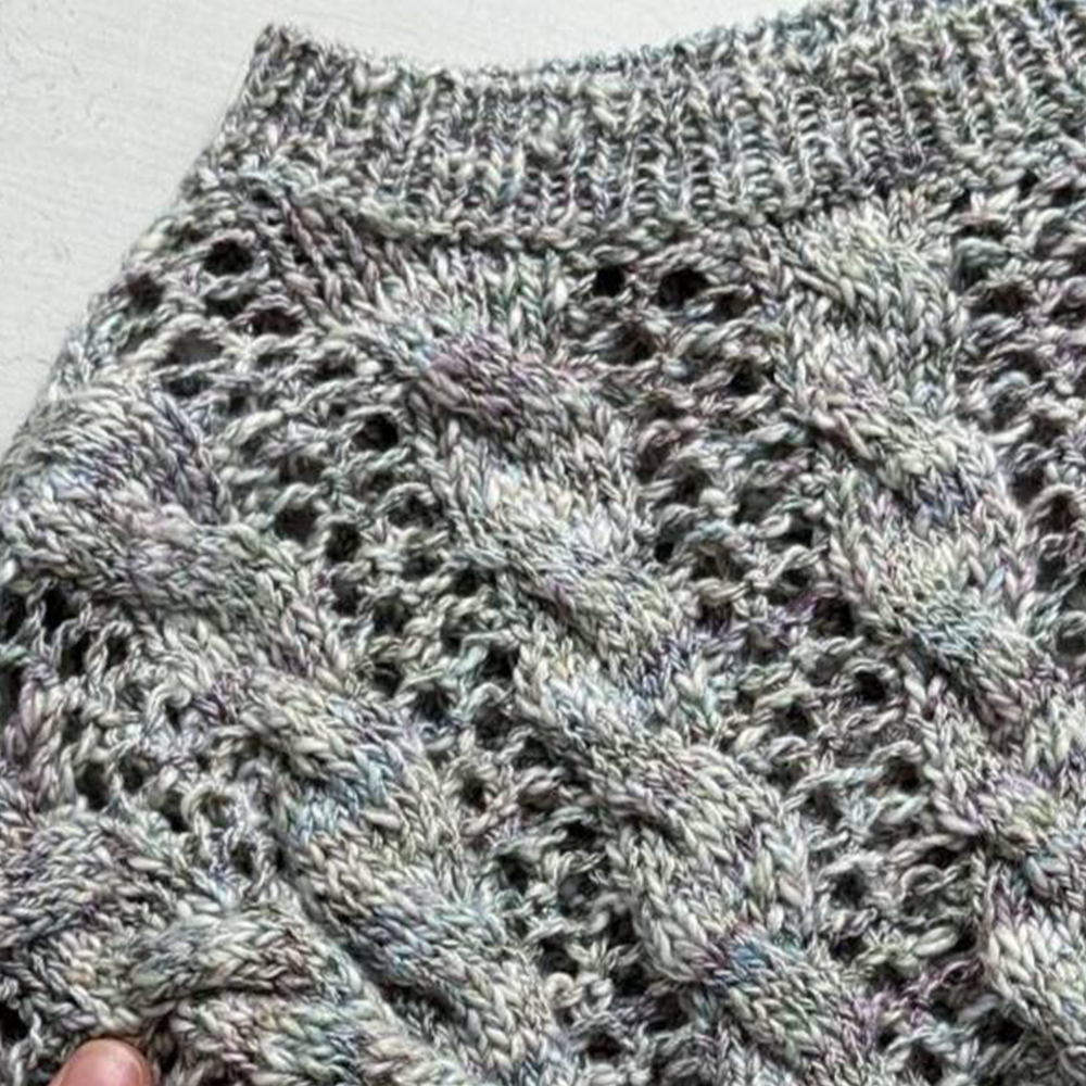 Благодаря матовому хлопку с утолщениями, распределенными равномерно, и витой блестящей нити конопли, создается приятная и интересная фактура. Превосходно будет смотреться в ажурных рисунках, в полотне будет напоминать гипюр.