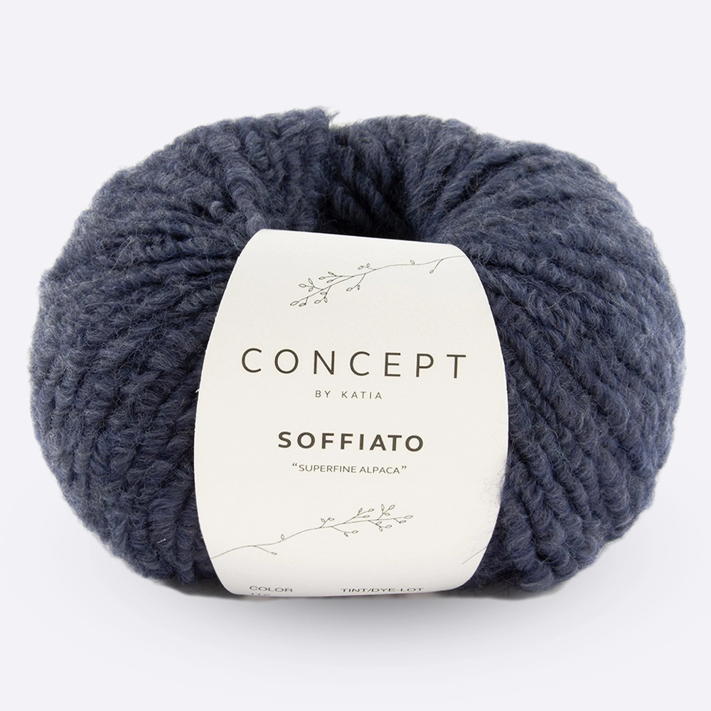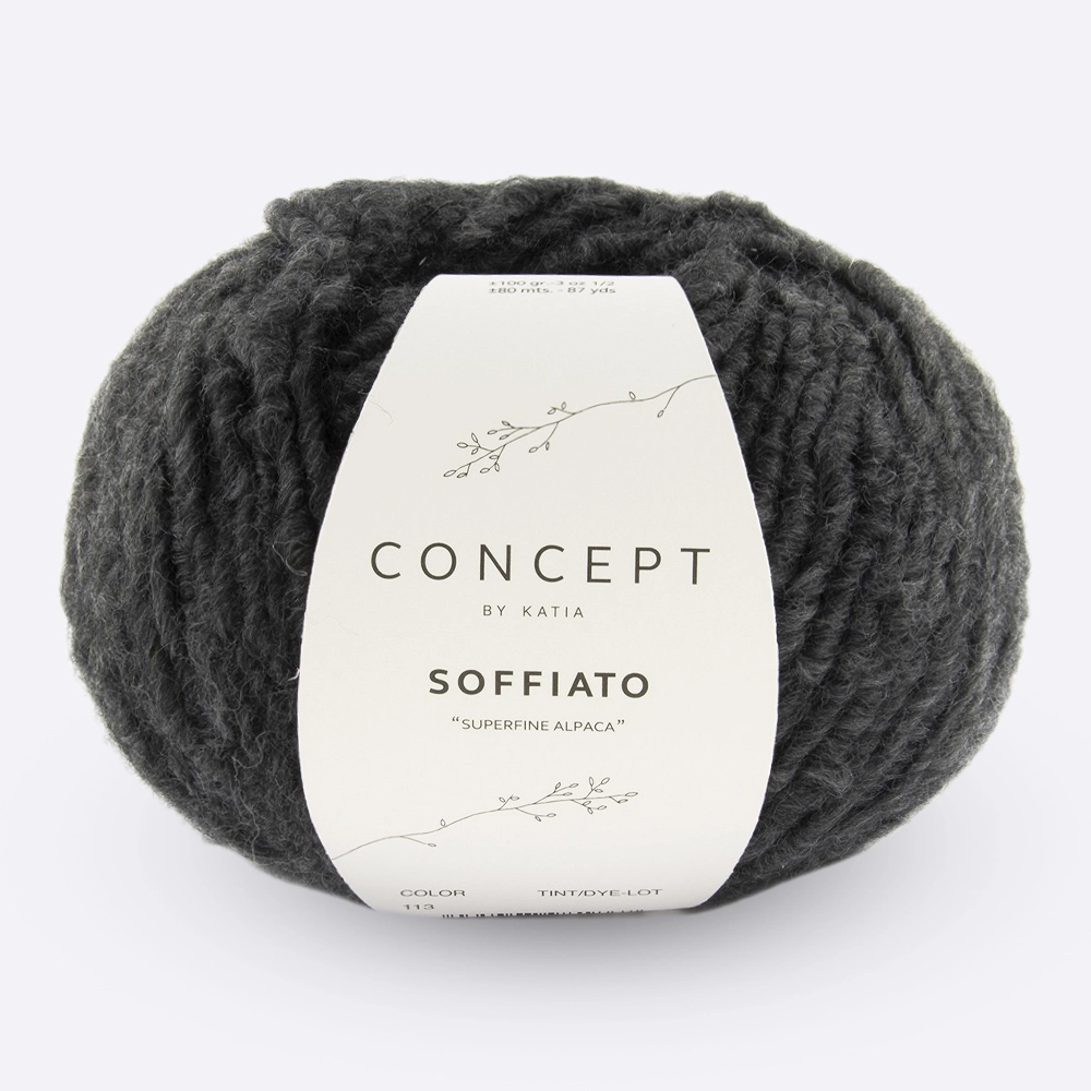 Превосходная толстая пряжа Soffiato, с содержанием 70% альпака и уникальной сложной круткой в виде руна новорожденного барашка. Soffiato подходит для элегантных и легких, не смотря на их объемность, изделий.