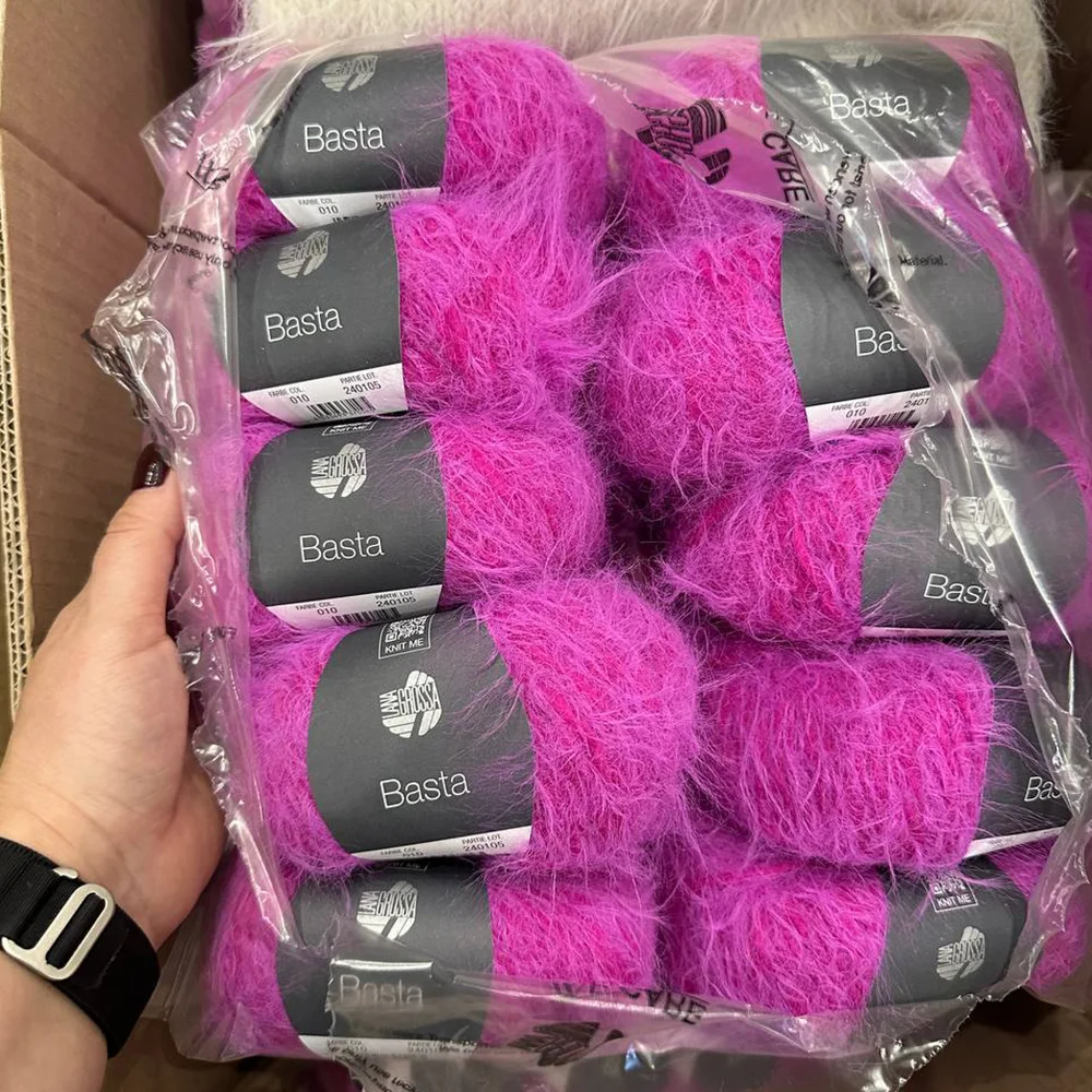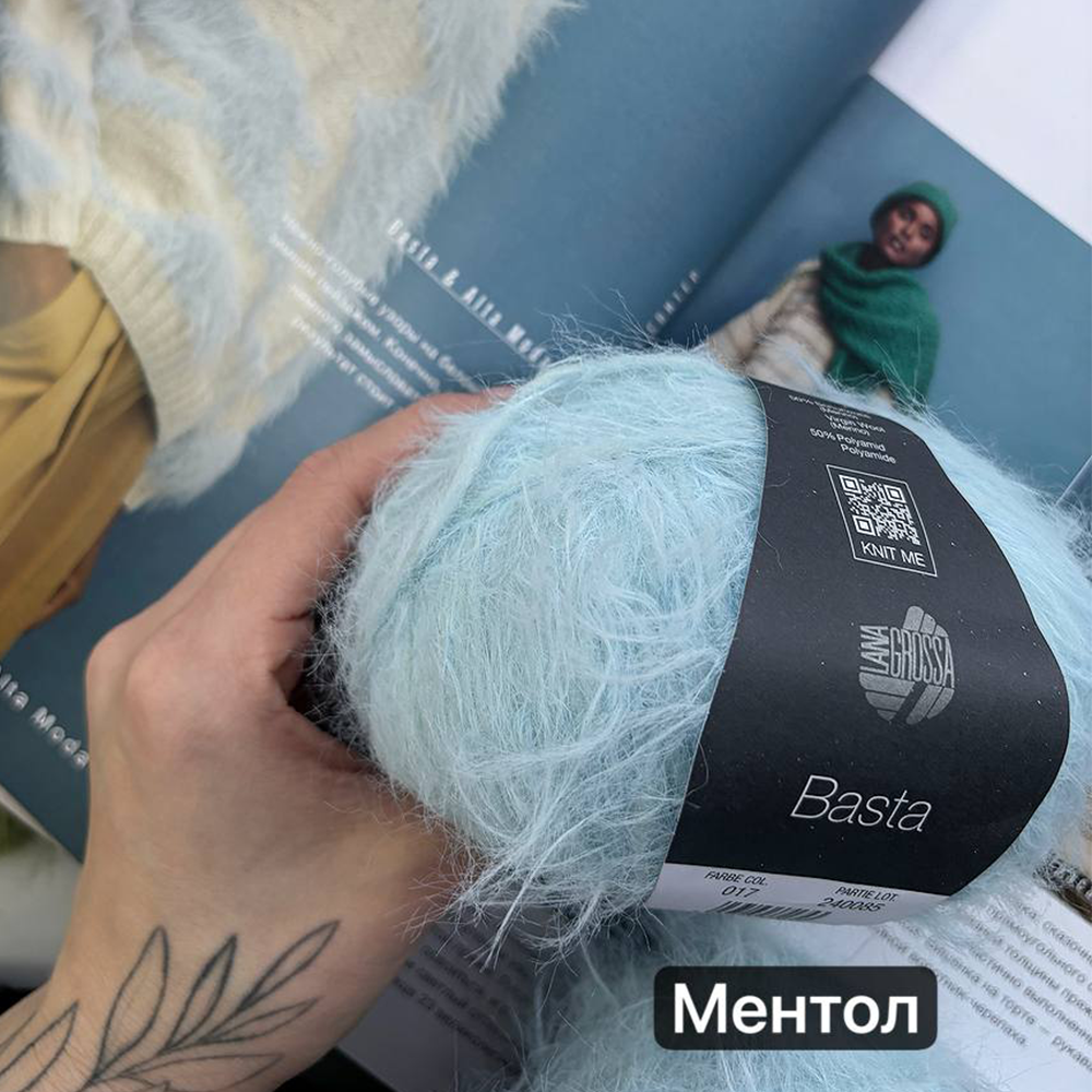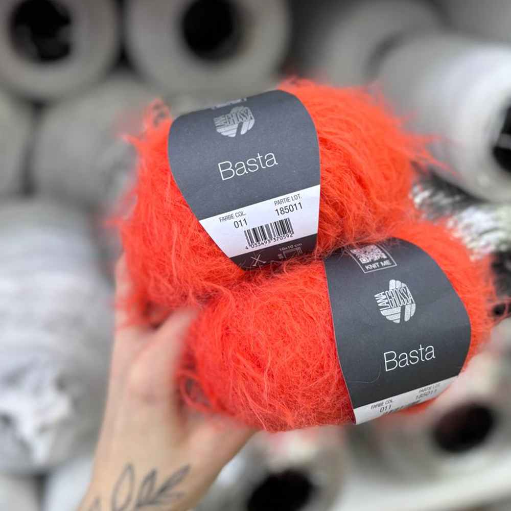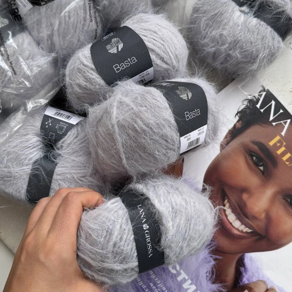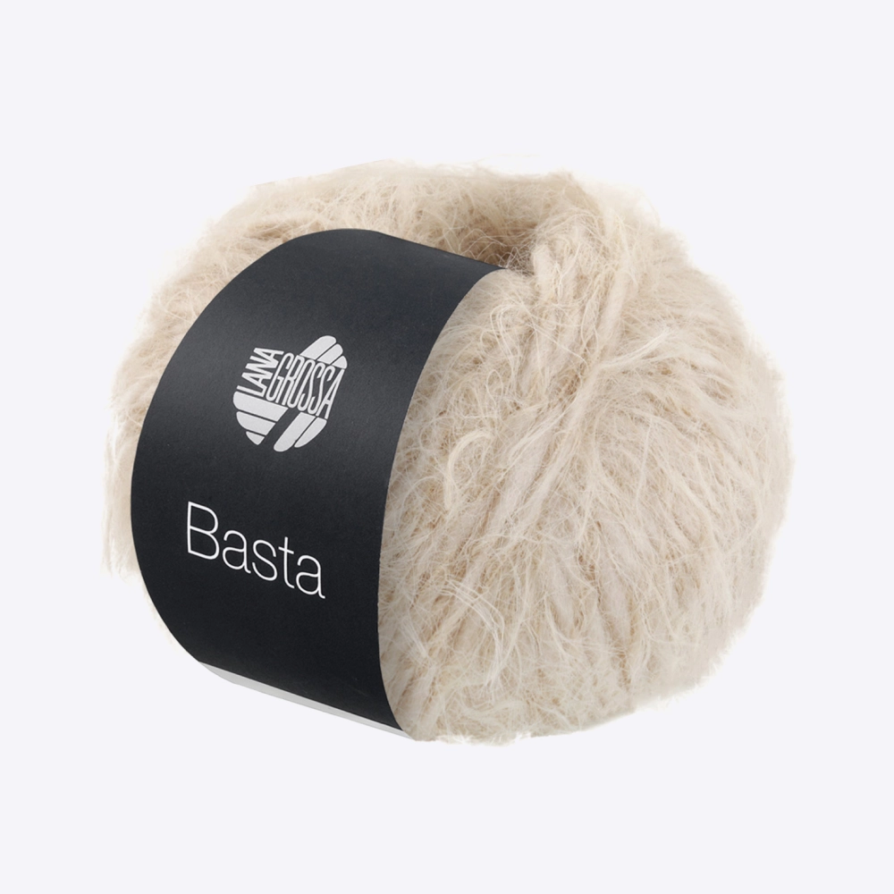 Lana Grossa Basta — пряжа с уникальной фактурой, свободно скрученная, легкая словно лебяжий пух, созданная из тонкой мериносовой шерсти с добавлением полиамида (ПА). В полотне создает модный эффект искусственного меха. Мягкая, объёмная и невероятно приятная на ощупь, эта пряжа идеальна для создания стильных и комфортных вещей. Можно вязать как цельные изделий из Basta, так и использовать её для отделки или интарсии.