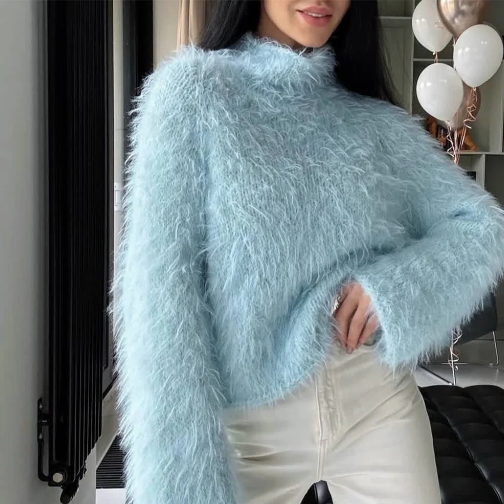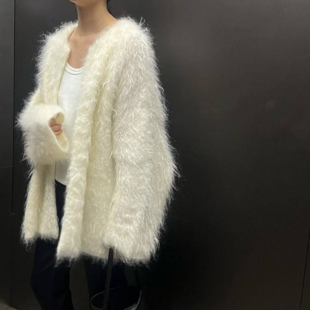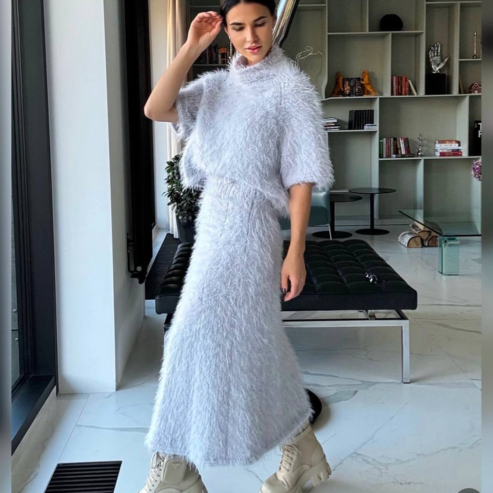 - Внешне, благодаря длинному ворсу и легкости от добавления ПА, пряжа создаёт воздушную и пушистую текстуру, имитирующую мягкий мех. Эффект искусственного меха сейчас на пике моды, добавьте стиль и оригинальность в каждое изделие, будь то джемпер, кардиган или шарф с шапкой.