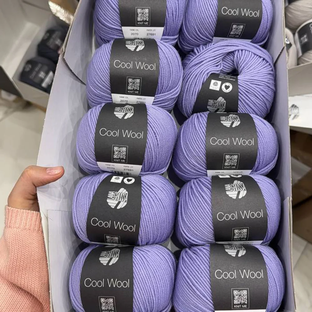 Пряжа Lana Grossa Cool Wool - Классика. База. Cool Wool изготовлена из тонкой мериносовой шерсти высшего качества, удивительно мягкой, никогда не колется и подходит даже для самой чувствительной кожи. Она обладает отличными терморегулирующими свойствами: согревает в холодное время года и обеспечивает хорошую воздухопроницаемость. Является логичным компаньоном для Пряжа Lana Grossa Cool Wool Vintage, артикулы имеют одинаковый метраж и крутку, могут дополнять друг друга в жаккарде или полоске, подходят для колорблоков и интарсий.