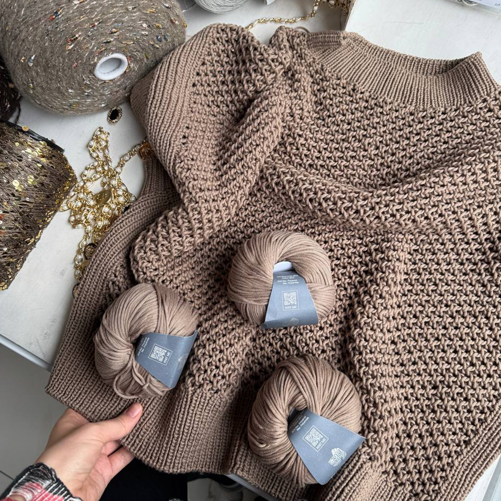 Фактура нити мягкая и объемная, что делает ее идеальной для вязания теплых свитеров, уютных кардиганов, шарфов и других аксессуаров. Пряжа легко поддается обработке, что порадует как начинающих, так и опытных вязальщиц.