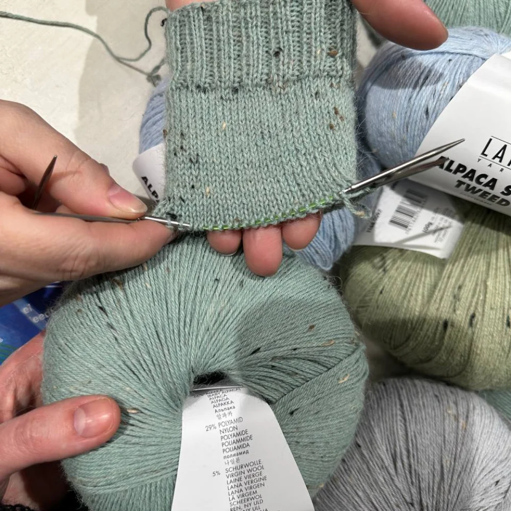 Как и в случае с любой пряжей, использование разных размеров спиц даёт различный результат при вязании из ALPACA SOXX TWEED. Для изделий одежды рекомендуется размер спиц 4 мм, указанный на этикетке мотка. Это позволяет получить лёгкое полотно с красивым драпированием. Для носков рекомендуется использовать спицы размером 2,5–3,5 мм, чтобы обеспечить прочность и долговечность готового изделия.