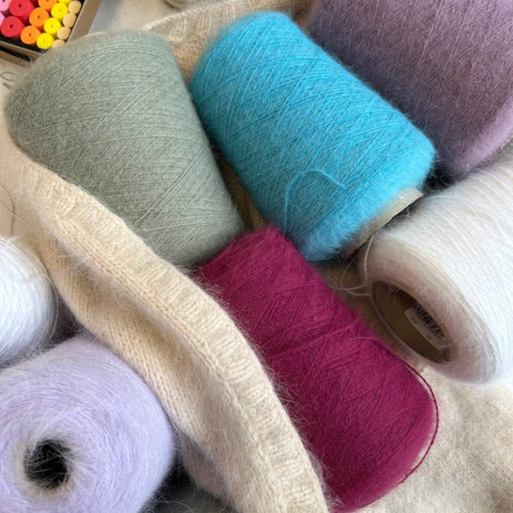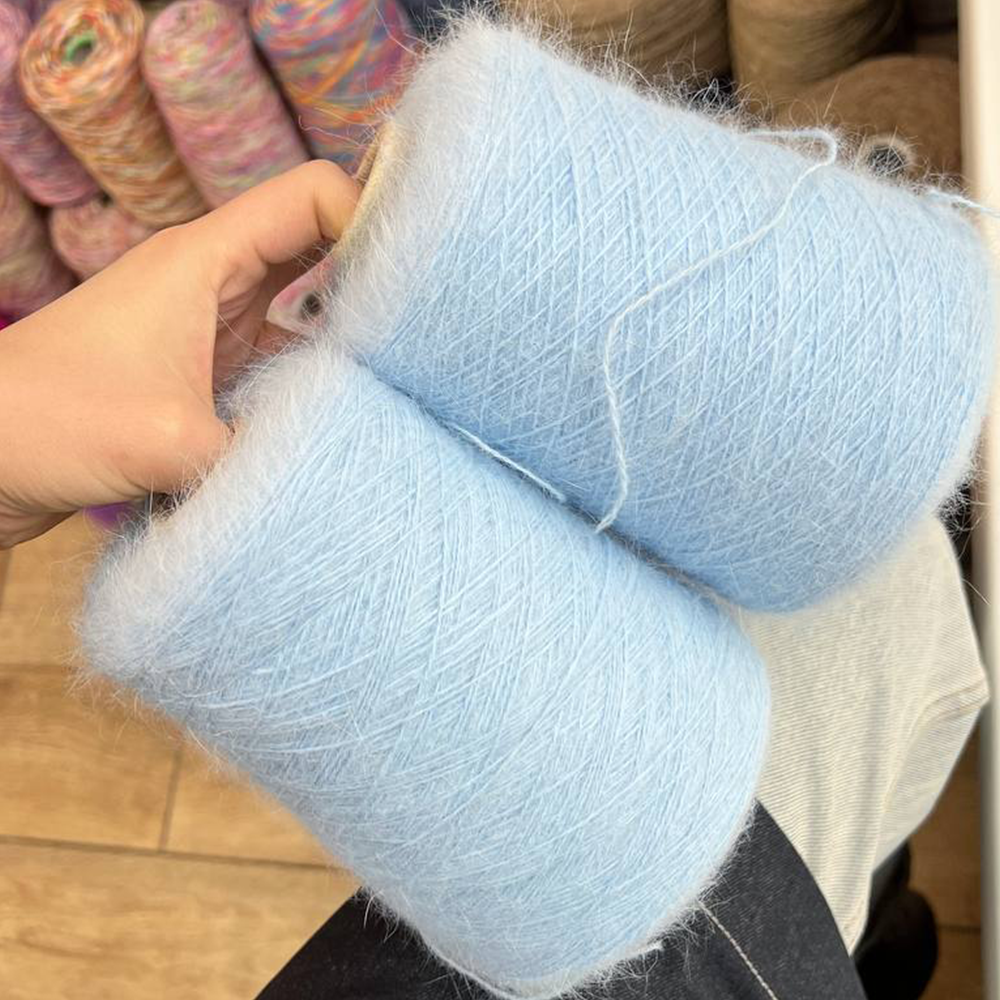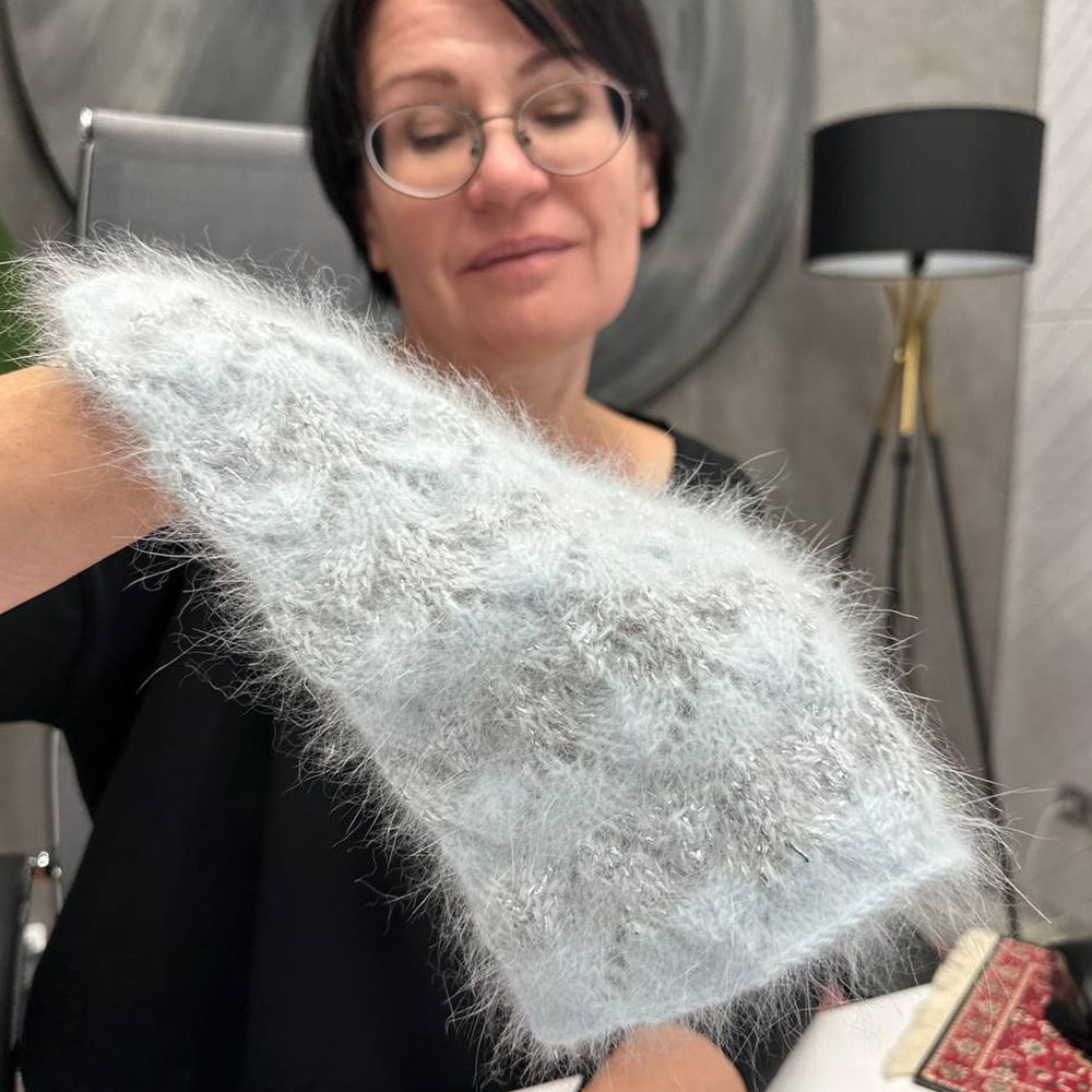 Роскошно мягкая ангора с восхитительным пушистым ореолом. Прикоснувшись к ней однажды, вы более не захотите вязать другой продукт. Исключительное и утонченное удовольствие — касаться этой нити и полотна из нее. Пушок ласкает пальцы, и нить струится по спицам как родник.