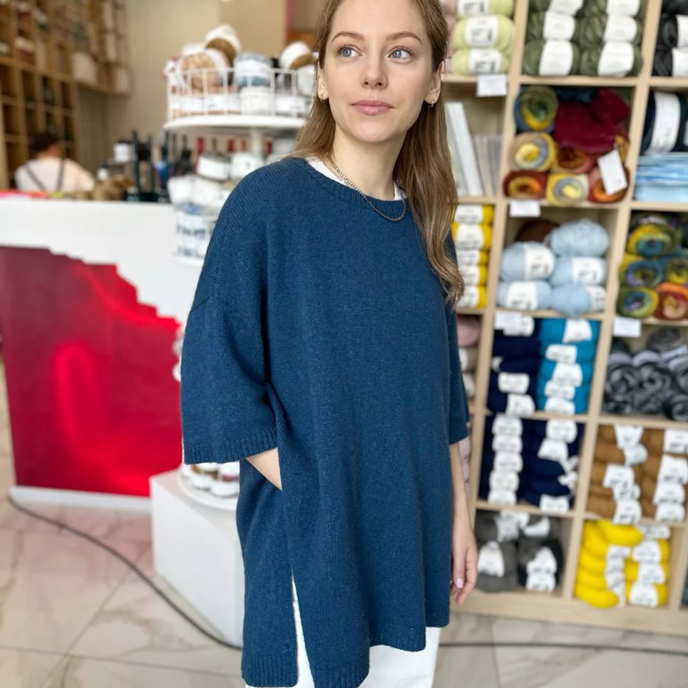 Обязательно свяжите большой информативный образец, сделать 2-3 ВТО, и тогда только приступать к расчетам и вязанию. Никогда не вяжите кашемир плотно, полотно должно выглядеть слегка расхлябанным до ВТО.