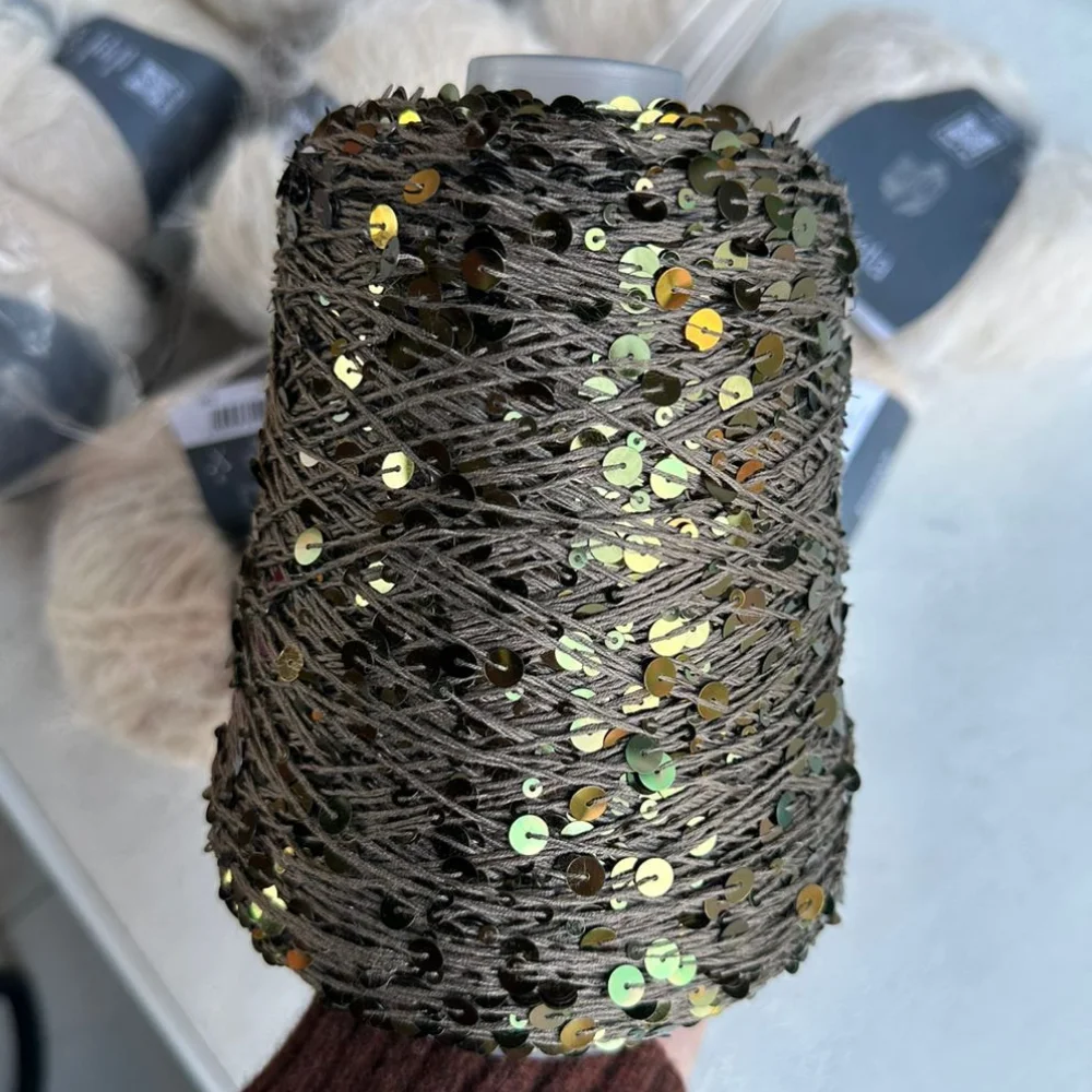 Итальянские пайетки произведены на фабрике Lustrosa. Китайский аналог нас не интересует. Мы хотели получить именно качественный продукт. Lustrosa производят пряжи совсем немного и только под заказ.