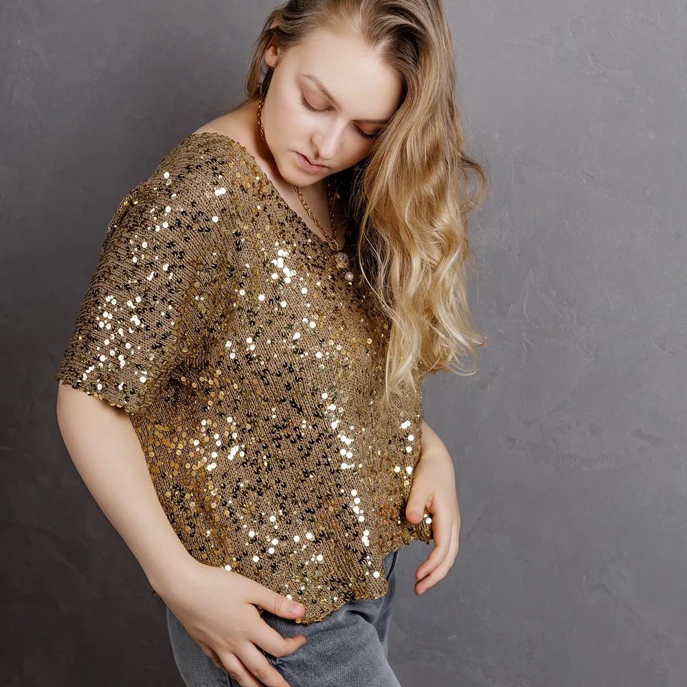 Пайетки придают шарм и игру любому изделию. Мировые дизайнеры используют пайетки в своих изделиях. Королевская пайетка отлично смотрится в проектах как самостоятельная нить, так как надета на хлопоковую объемную нитку. Так же можно пробросить нежные полоски на шапке, жакете, кардигане, джемпере. Их просто ввязывают с основной нитью. Носить пайетки комфортно. Не раздражают кожу.