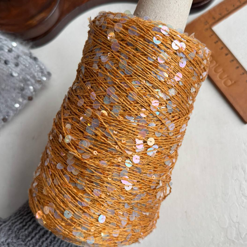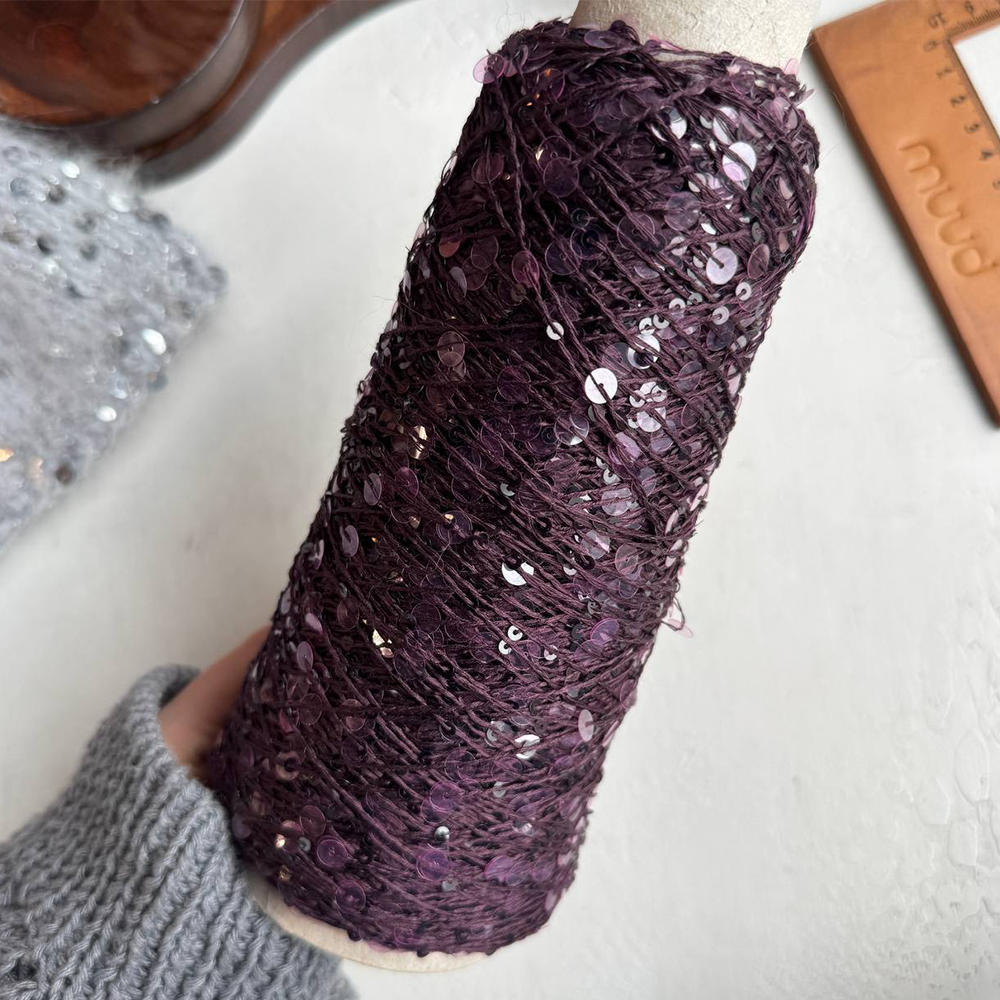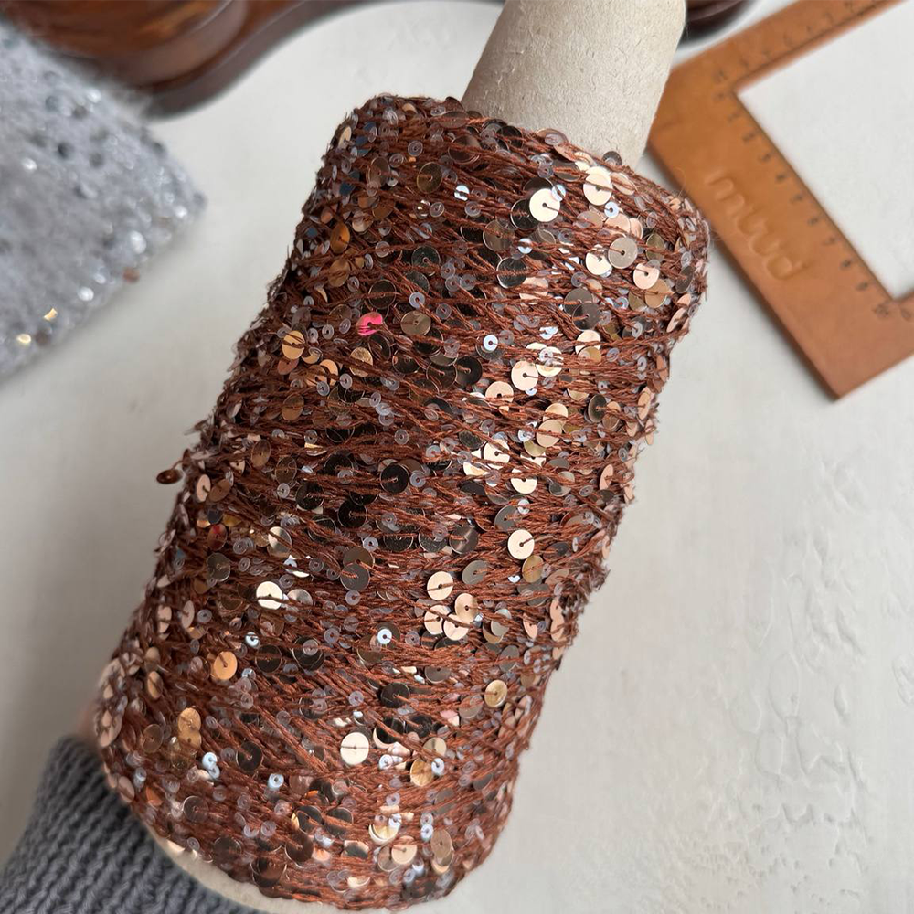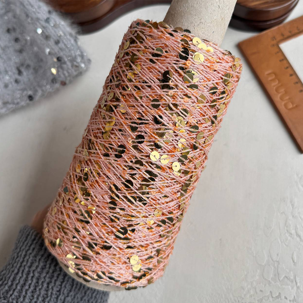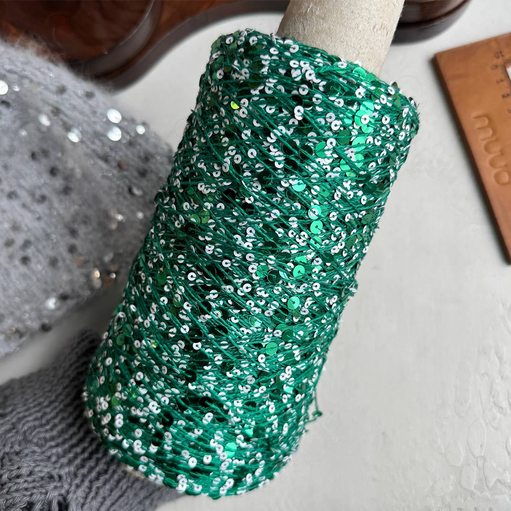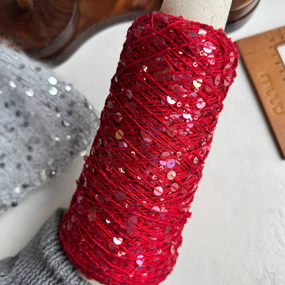 Обратите внимание на то как расположены пайетки и на чередование их размера. Диаметр 3 мм и 6 мм, они чередуются в определенной последовательности, что и создает этот незабываемый эффект мерцания, словно пряжа заигрывает с вами.