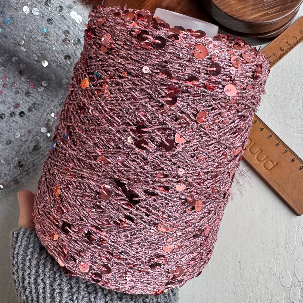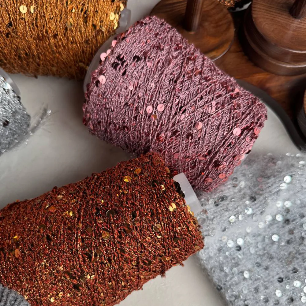 Берите Reflex для декоративного подмота (акцентов), например, для полос, интарсии, отделки планок или для жаккарда. Просто вяжите нить пайеток с основной.