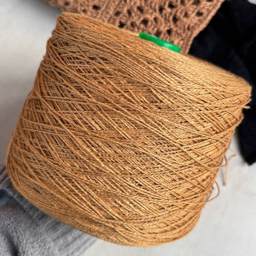 Это высококачественная пряжа из 100% льна, с шелковистым блеском и мягкостью, раскрывающейся на коже при носке.