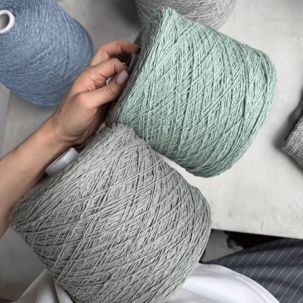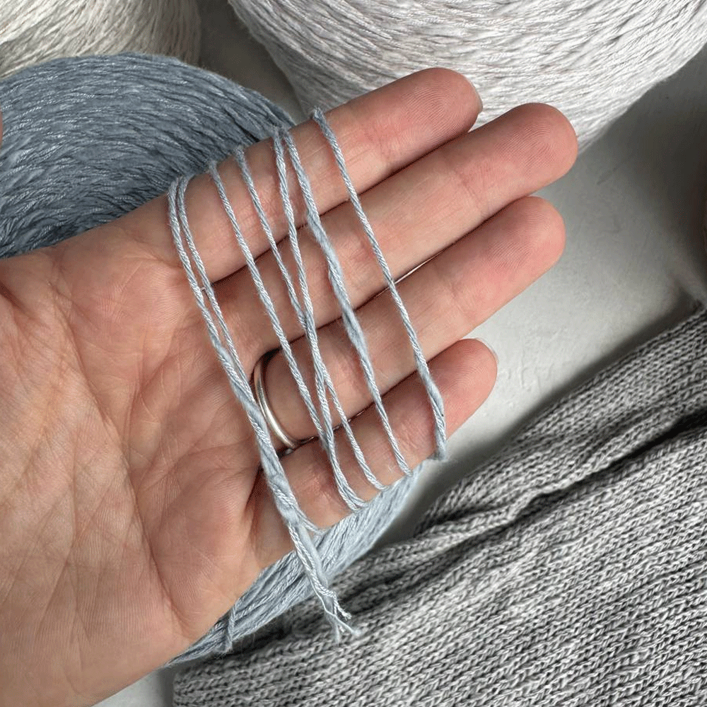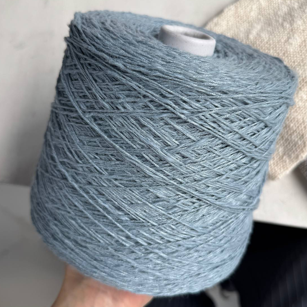 Нить течет под пальцами — то гладкая, то вспушенная, как летний бриз на воде. В полотне выглядит элегантно, струится как шелк. Вяжите свободно на спицах 3–4 мм — так рельеф проявится особенно красиво.