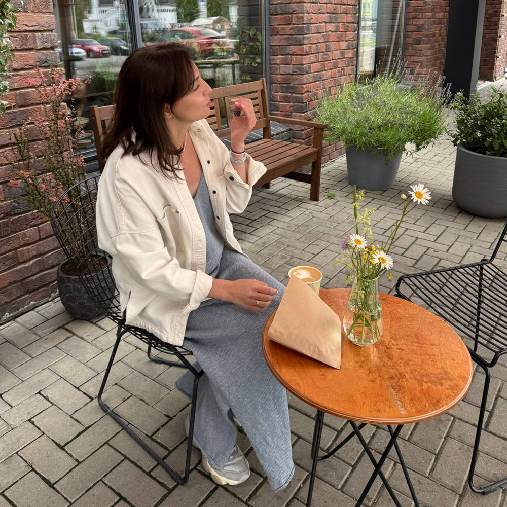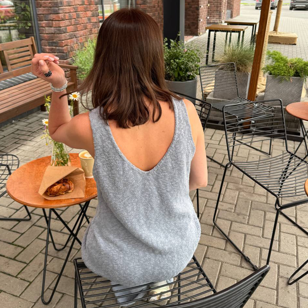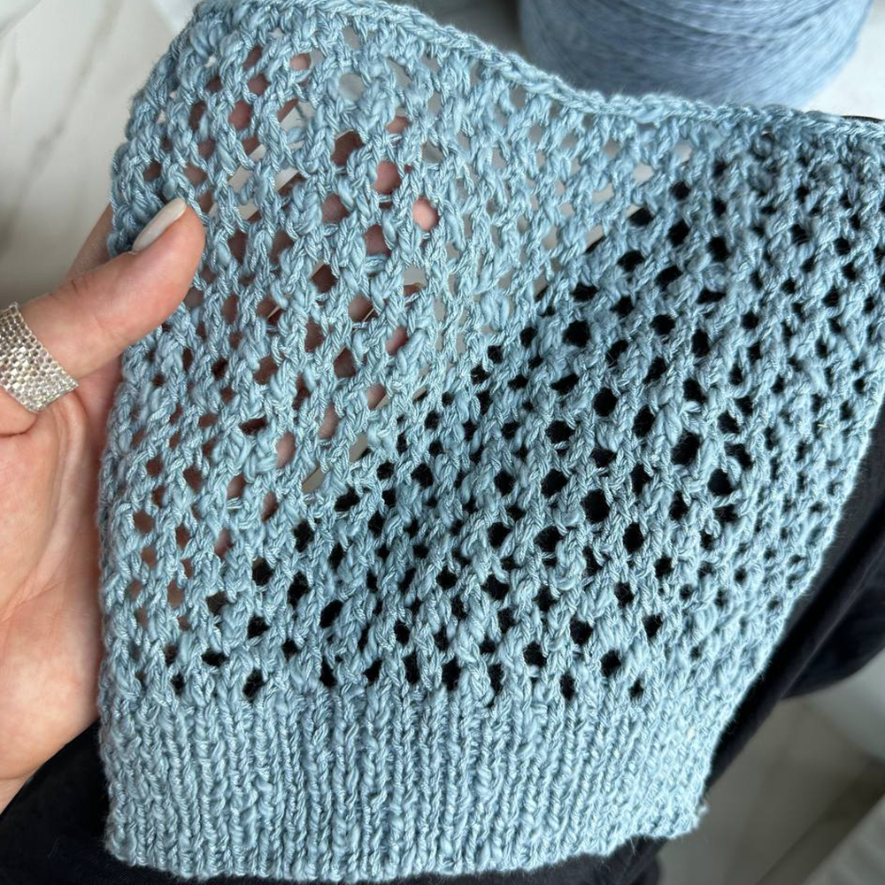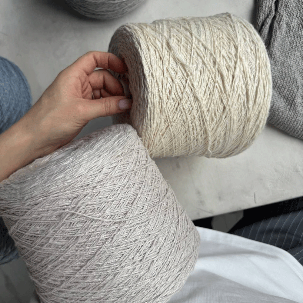 Нить течет под пальцами — то гладкая, то вспушенная, как летний бриз на воде. В полотне выглядит элегантно, струится как шелк. Вяжите свободно на спицах 3–4 мм — так рельеф проявится особенно красиво.