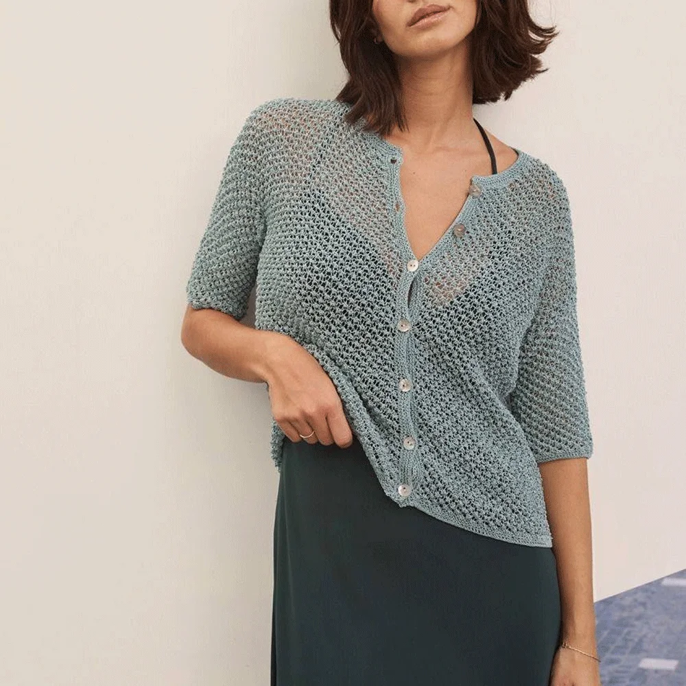 Cotolino — натуральный летний состав, который взял лучшее от своих компонентов. В основе — 60% льна, дышащего, прочного и выносливого. А благодаря 40% хлопка нить легко вяжется, меньше садится и хорошо держит узоры. Нить объемная, легкая и мягкая, скручена неплотно. В руках становится маслянистой и послушной. Оптимальная толщина для ваших любимых спиц 3 мм. В полотне струится, драпируется и лоснится. Имеет легкую натуральную фактуру с нежным льняным пушком. Дышит — комфортно носить летом.