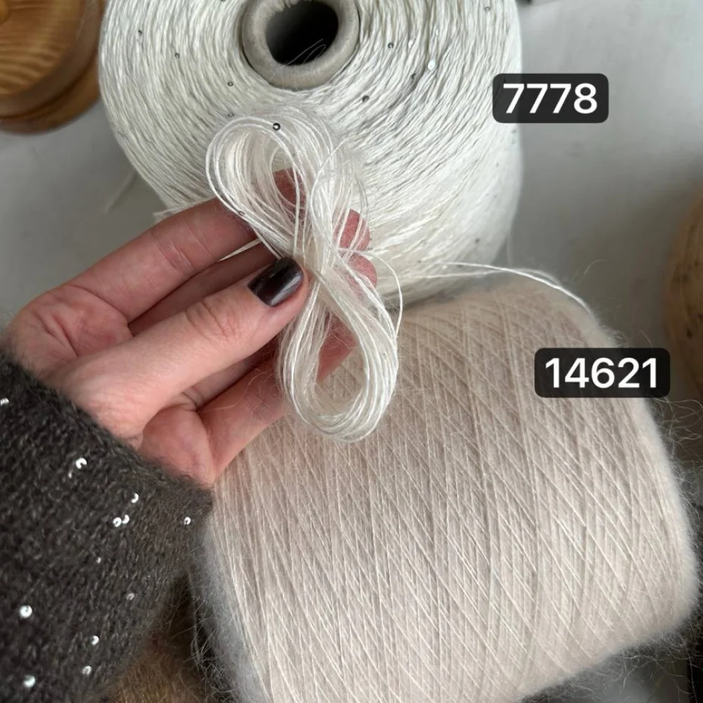 Во всей Италии сейчас нет столько кидмохера, сколько изготовили и окрасили специально по нашему заказу. В основе Silkid — суперкидмохер, самый тонкий и мягкий пух с первой стрижки мохеровых козлят. Он собран на нить шёлка малберри — самого гладкого и прочного сорта.