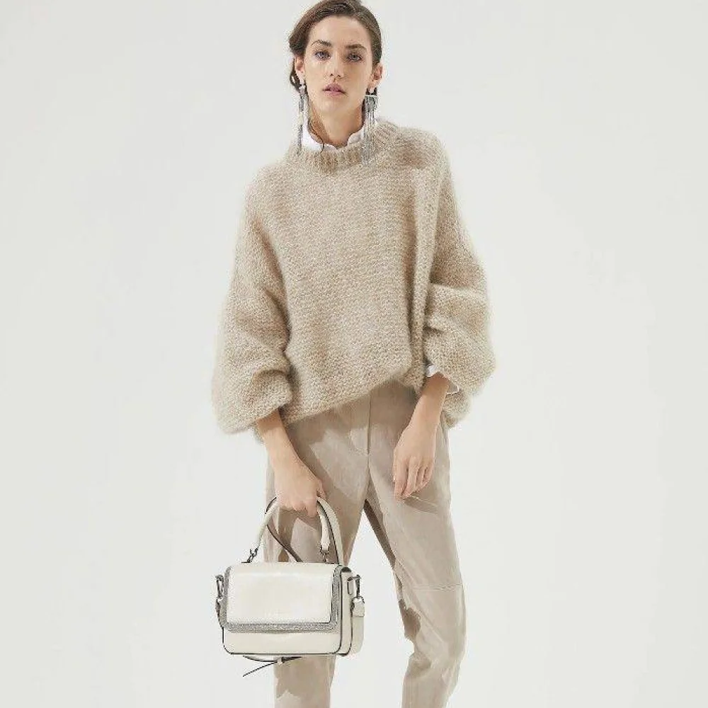 Вяжите из Silkid джемперы-паутинки, палантины, пуловеры. Можно вязать в одну нить на спицах 2–3 мм — получится прозрачное воздушное полотно, или использовать как пушистый подмот к мериносу.