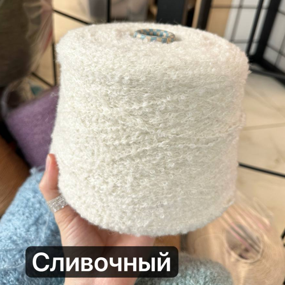 Уникальная структура букле позволяет нитям раскрыться во всей их пушистой красоте, образуя рельефные, мягкие завитки, которые наполняют изделие объемом и уютом.