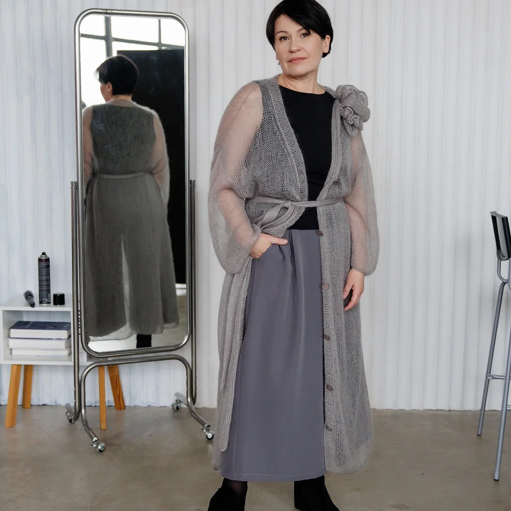 Максимально натуральная нить – суперкидмохер на шелке Малбери в идеальном сочетании, где нежнейший пух окутывает вас невесомым облачком. Метраж позволяет связать нежную паутинку в одну нить или вязать пряжу в несколько сложений, использовать в подмот. И конечно же, кидмохер на шелке – это исключительные мягкость, тепло и невесомость.