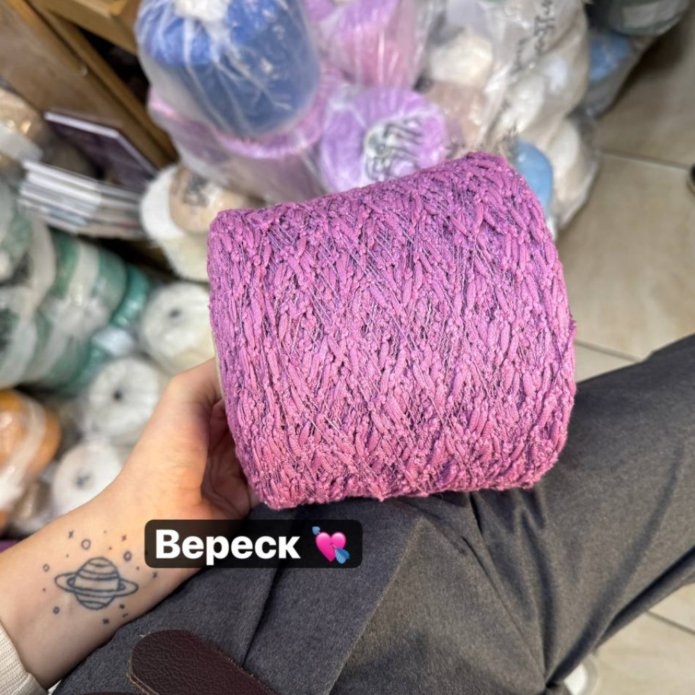 Эффектно выглядит в любом изделии. Даёт уникальную объемную фактуру, отлично ложится в гладь и узоры. Хорошо смотрится и соло, и в подмот.