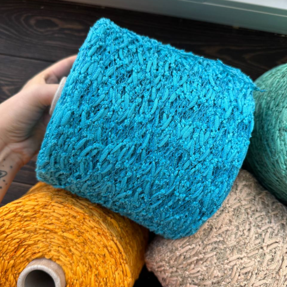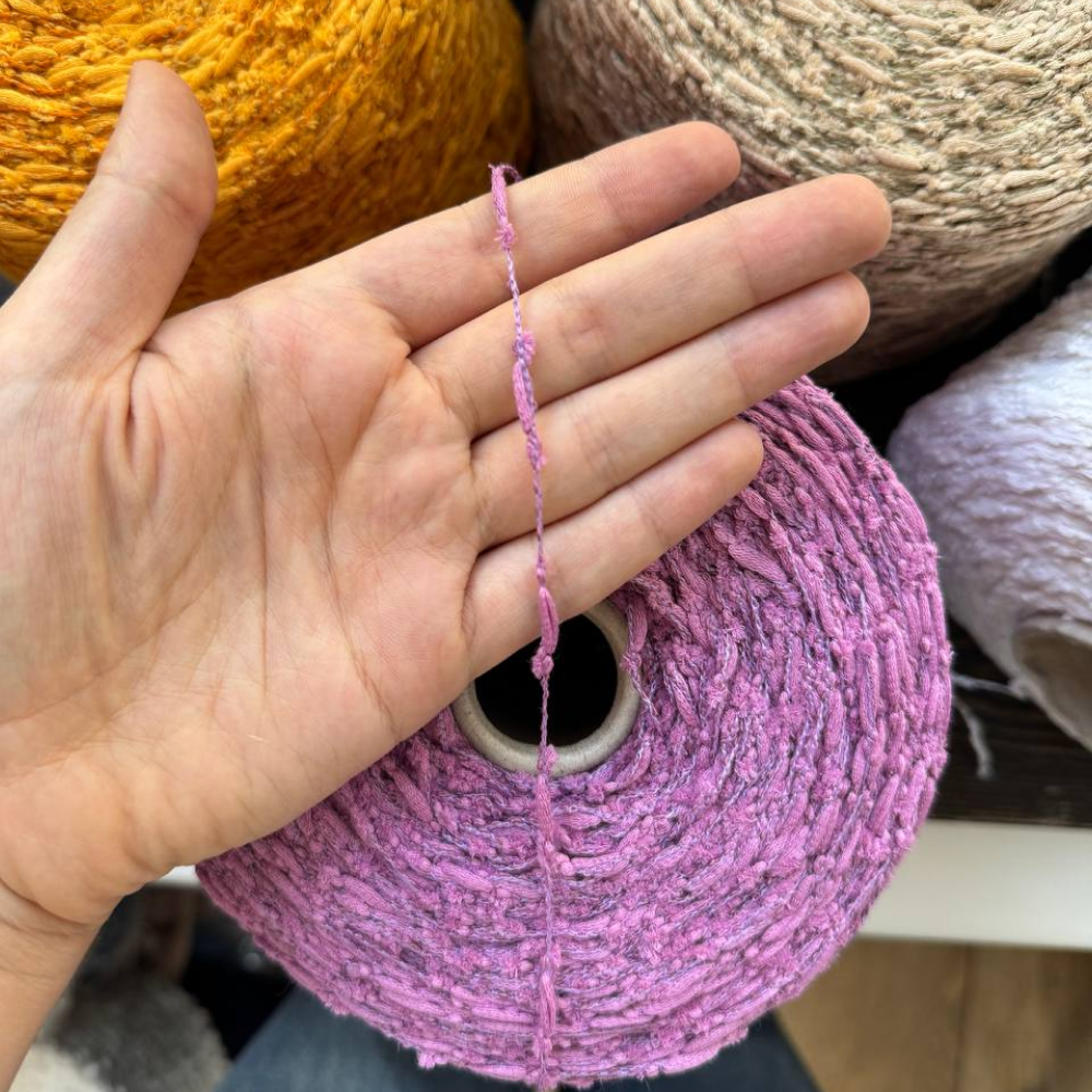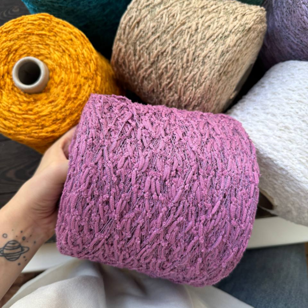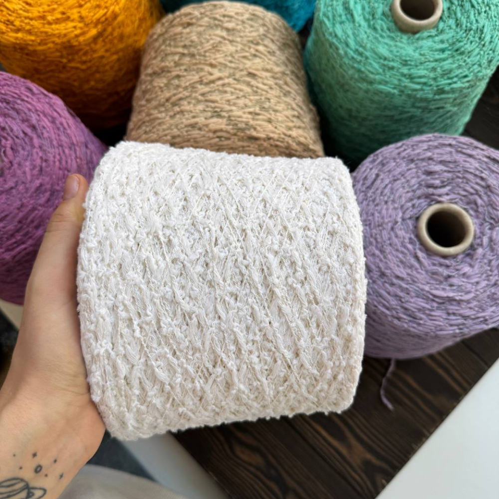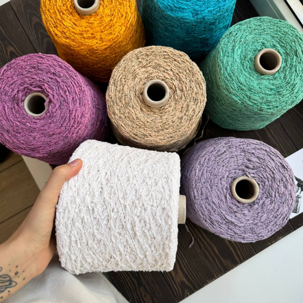 Fauna — это мягкие хлопковые «гусенички», собранные на тонкой стабилизирующей нити. В составе — хлопок и лён с добавлением переработанного ПА для прочности.